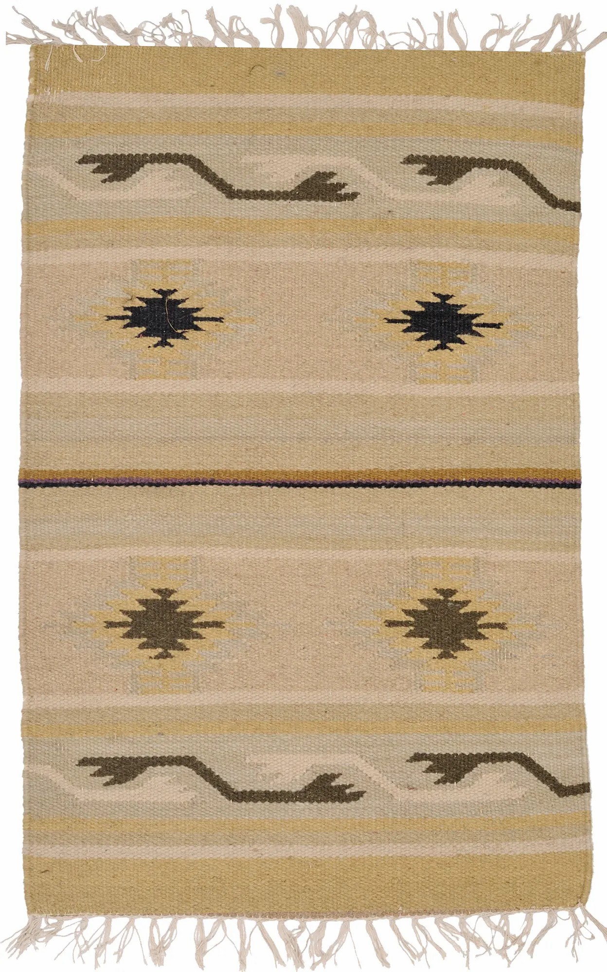 Beyond its beautiful color, the woven motifs create visual interest and add to its artistic appeal. The carefully arranged patterns draw the eye, lending a touch of sophistication to the design. The motifs are a captivating blend of traditional and contemporary aesthetics. The fringe detailing along the edges adds a playful and textural contrast to the smooth, woven surface. This piece's dimensions make it incredibly versatile. Its size is perfect for smaller spaces like hallways, entryways, or even as an accent rug beside your bed. Layer it over a larger rug to create depth and visual interest, or use it to define a specific area within a larger room.
