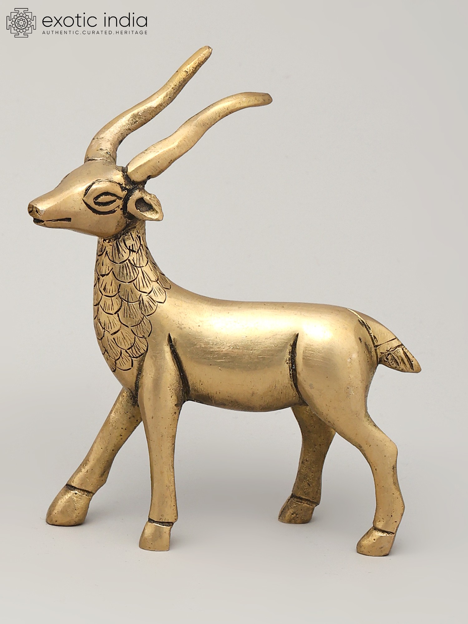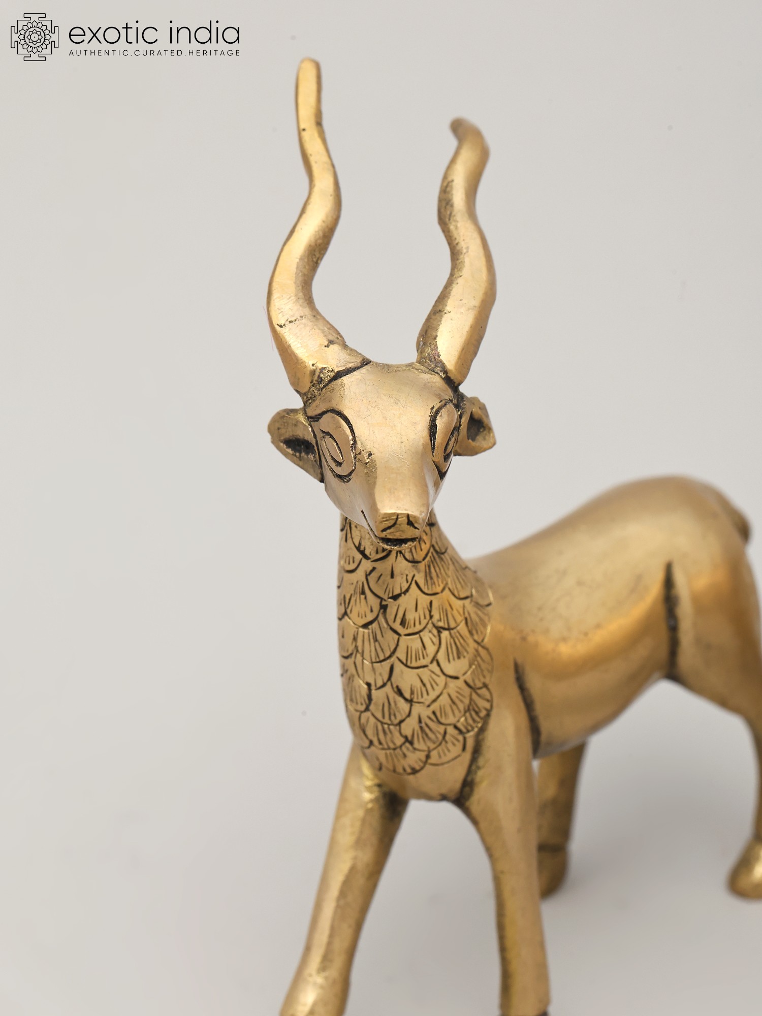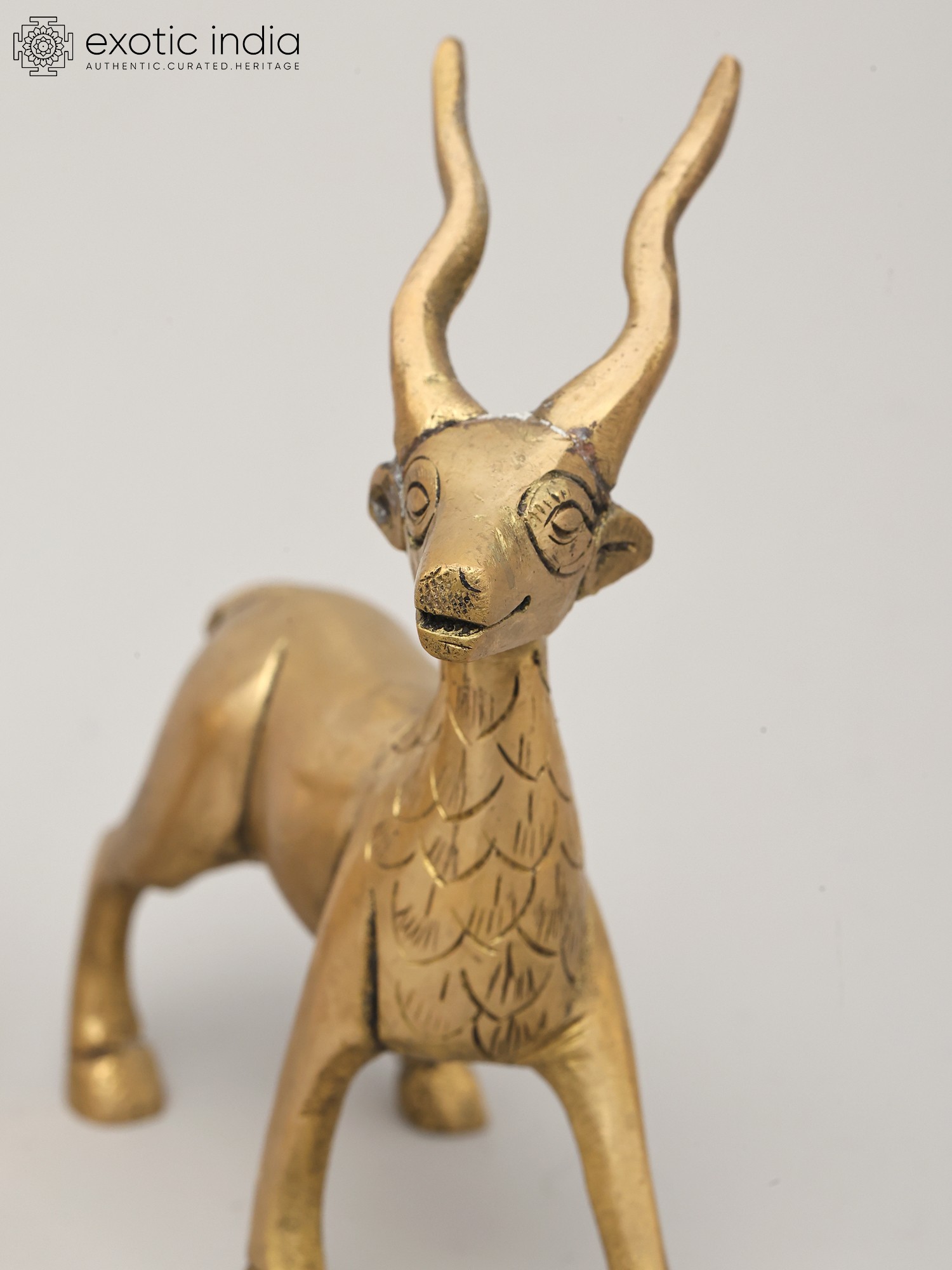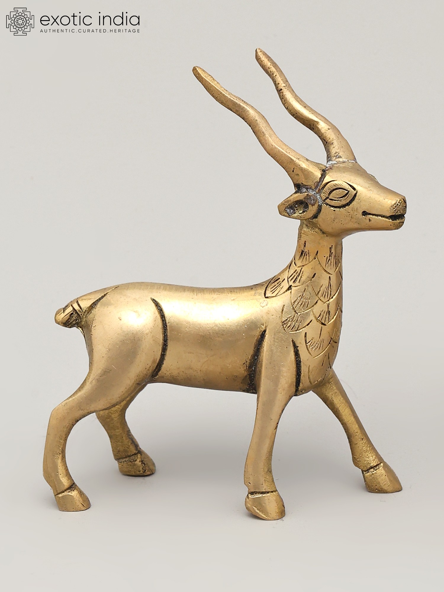 This Pair of Deer Figurines, crafted from brass, exudes timeless elegance and artistic charm. Though referred to as deer, the figures are actually of graceful Antelopes, captured in exquisite detail. The brass material lends a luxurious sheen to the figurines, enhancing their aesthetic appeal. Each curve and contour of the antelopes' bodies is meticulously rendered, imbuing the figurines with lifelike grace and beauty.