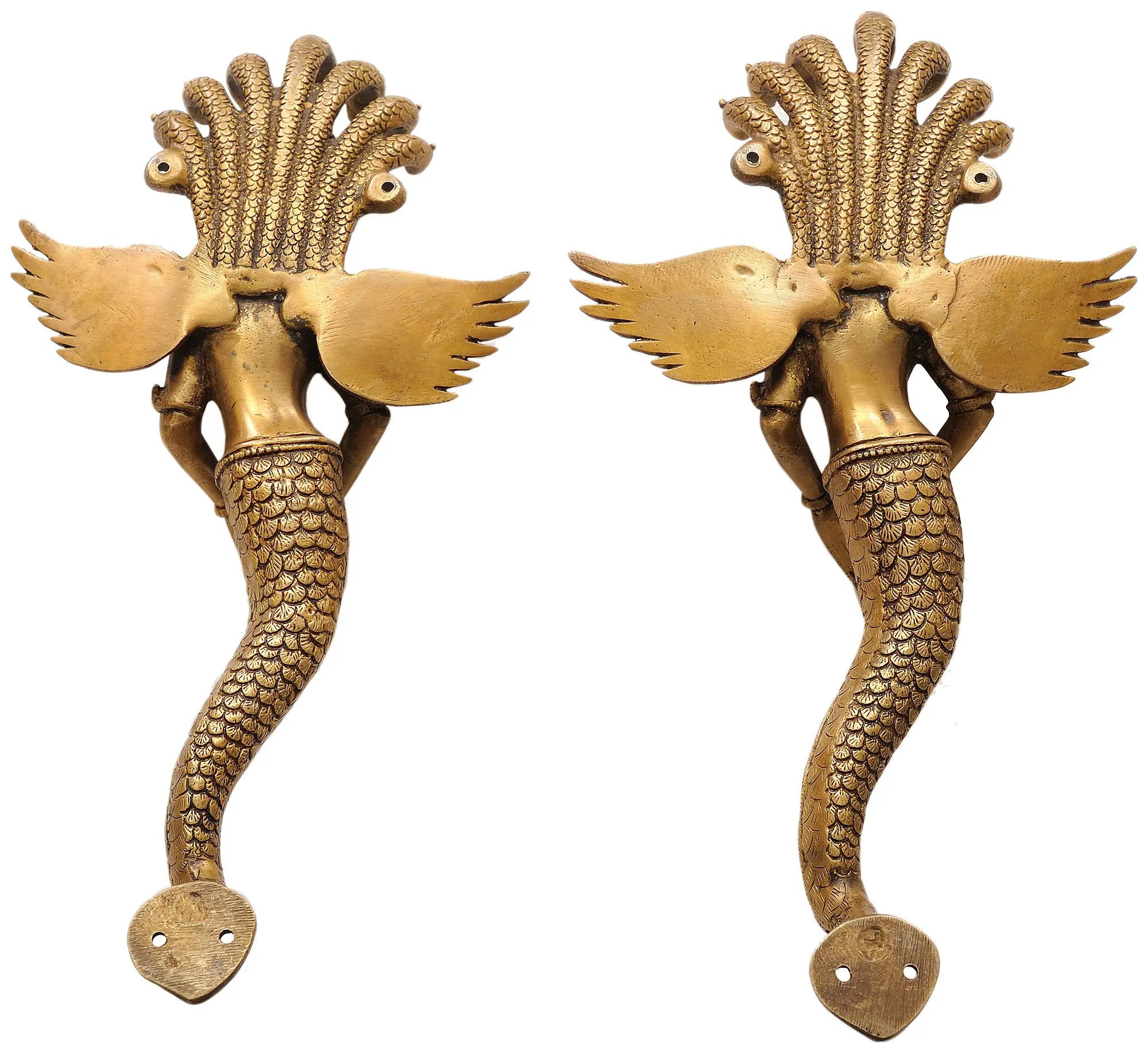 Welcome guests with an auspicious and protective touch using our Pair of Naga-Kanya Door Handles. Beautifully designed, these handles feature the mythical Naga-Kanya, symbolising serpentine guardianship and auspicious energy. The intricate detailing and symbolic significance create an inviting and protective ambiance. According to tradition, Naga-Kanyas are believed to bring blessings and ward off negativity. Let these door handles not only enhance your home's aesthetic appeal but also serve as a guardian at your threshold, ensuring a positive and secure welcome.