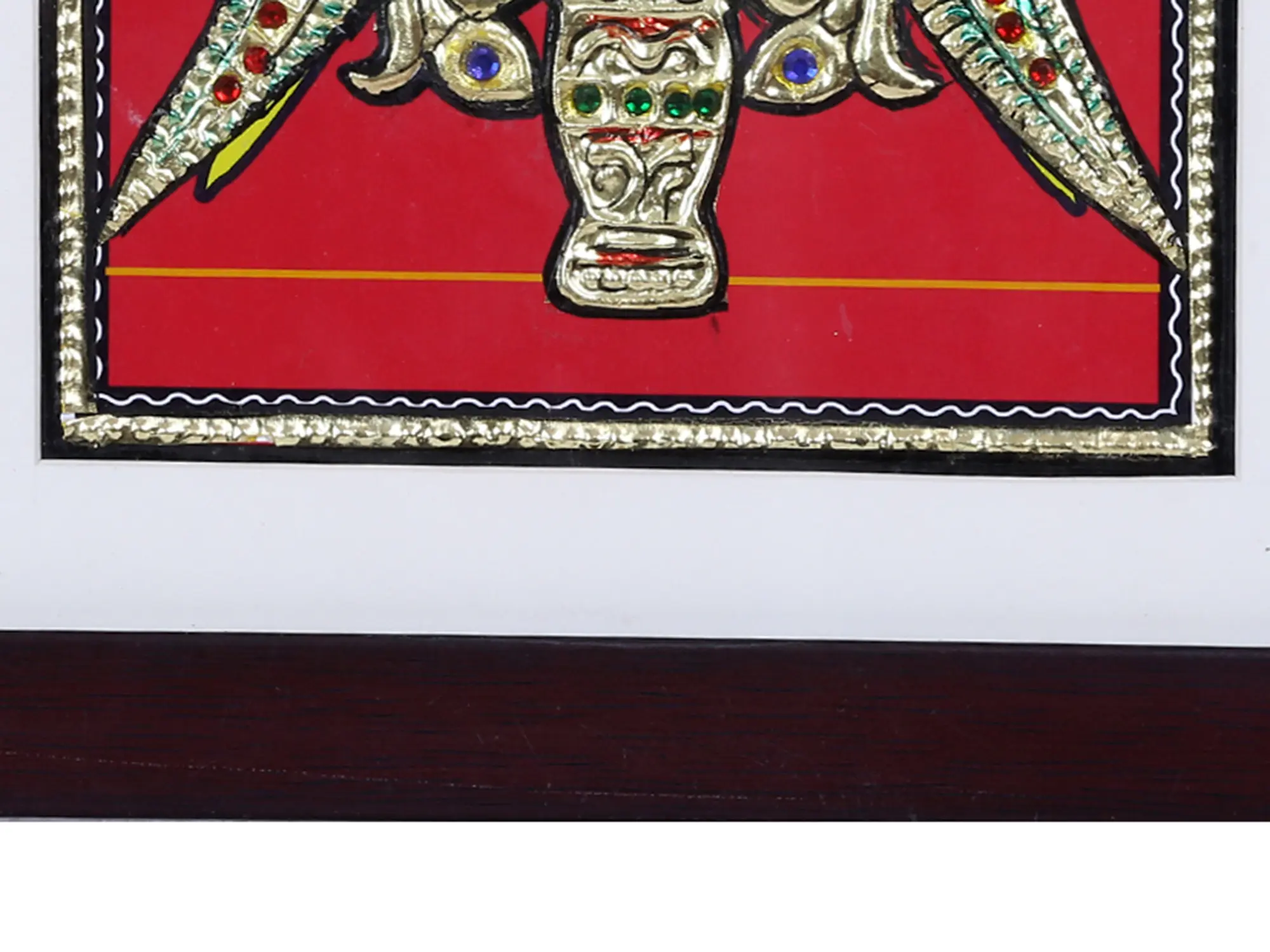 What truly sets this artwork apart is the masterful use of gold foil. Genuine gold leaf is intricately applied to highlight the majestic plumage of the parrots, their ornate crowns, and the decorative elements of the central motif. This opulent embellishment not only adds a luxurious sheen but also imbues the artwork with a divine radiance, a hallmark of authentic Tanjore paintings. The shimmering gold catches the light, creating a dynamic interplay of color and texture that is both visually stunning and deeply evocative.