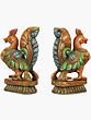 Each piece is meticulously hand-carved from South Indian temple wood, showcasing the rich heritage and artistry of the region. The intricate detailing speaks to the skill of the artisans, with every curve and contour thoughtfully rendered. The vibrant colors, applied with care, bring the carvings to life, making them a striking addition to any space.