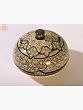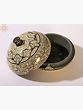 Paper mache, a technique that dates back centuries, is a labor of love. Each bowl starts as layers of paper pulp, meticulously shaped and dried. The artisans of Jammu & Kashmir then take the artistry to a new level, hand-painting the surface with exquisite designs. This bowl showcases a breathtaking pattern in black ink against a soft, cream-colored background. The intricate detailing displays both geometric and floral motifs, reflecting the region's diverse artistic influences. The skilled artisans not only shape and paint the bowl itself but also craft the delicate, finely detailed knob on its lid. The end result is a masterpiece that speaks to generations of tradition and skill.