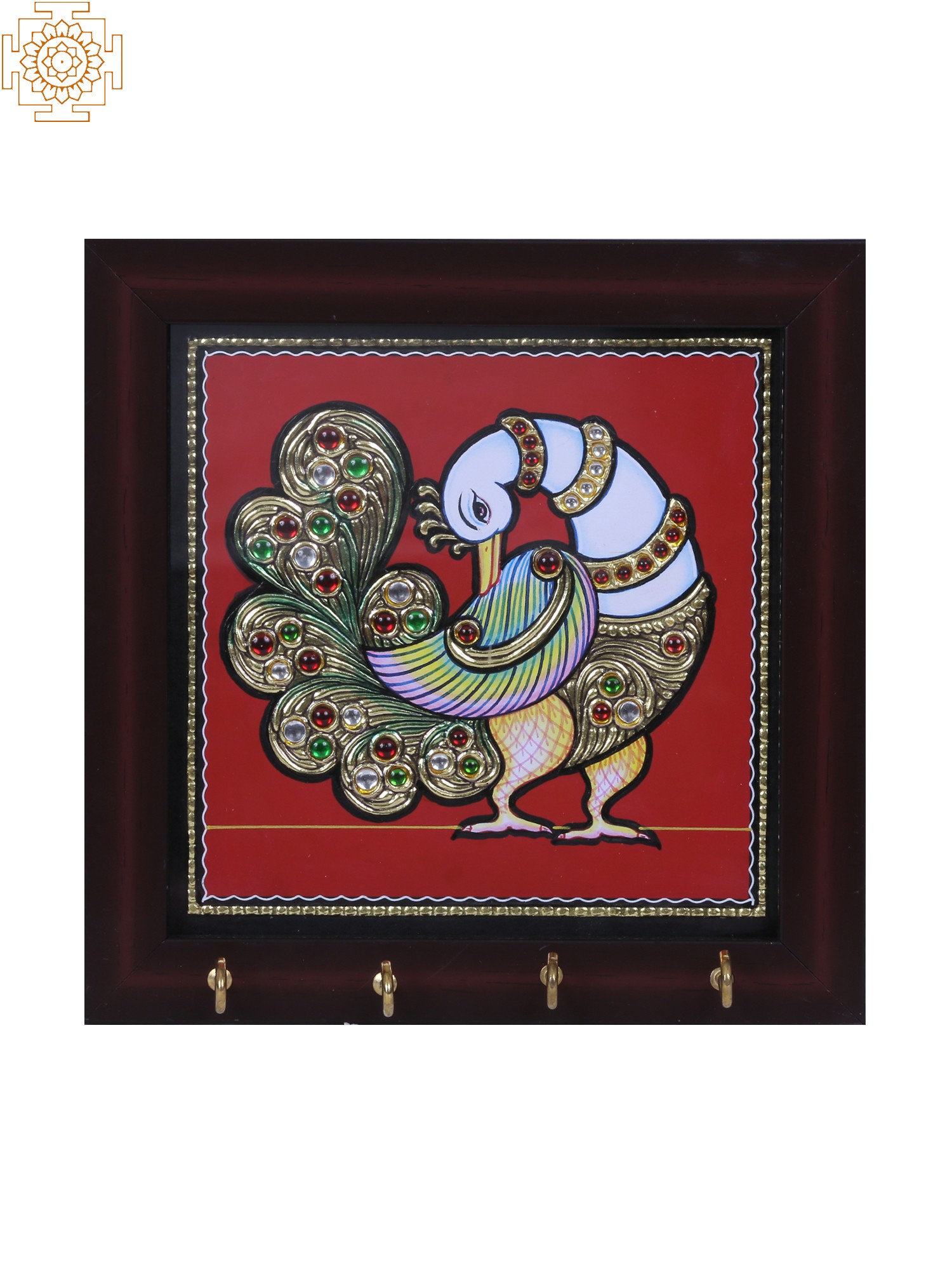 Peacock Key Hanger | Tanjore Artwork with Gold Foil Work