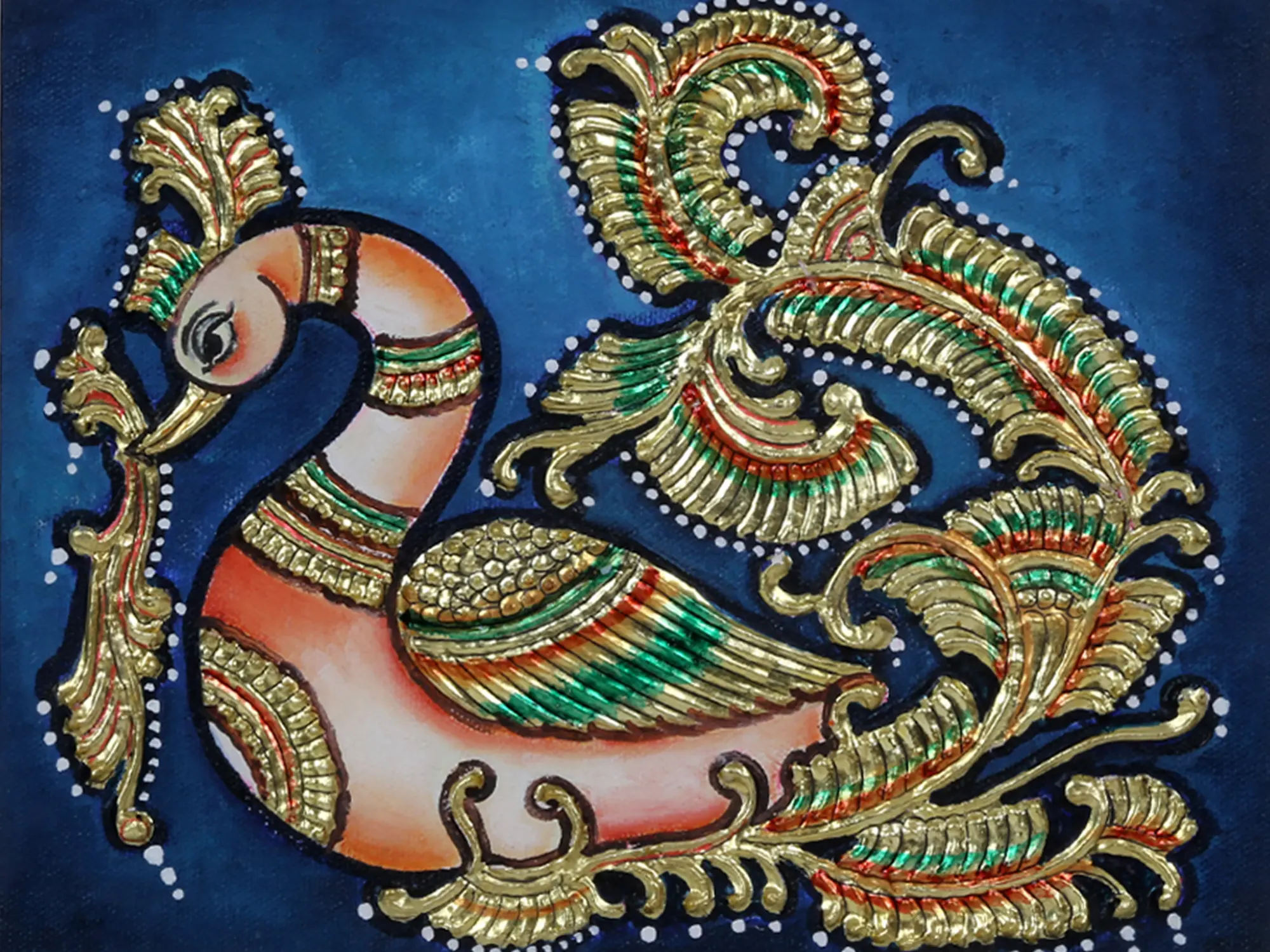 17" Peacock Design Hand Painted Wall Mounted | Wood Mounted | Handmade Art | Made In India