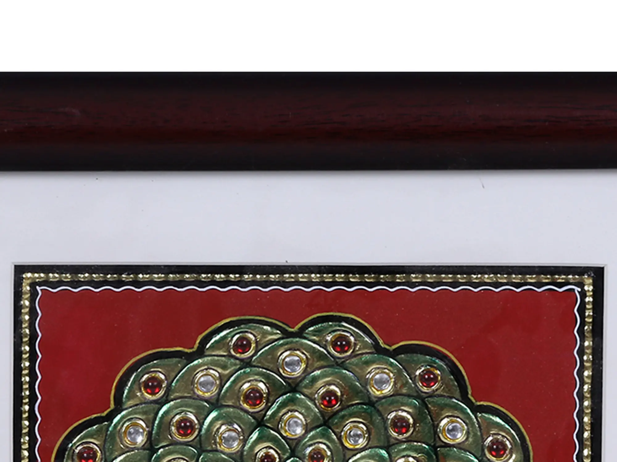 Tanjore paintings are renowned for their richness and intricacy, a tradition that dates back centuries. This art form typically features deities and scenes from Indian mythology, characterized by the use of vibrant colors, inlaid precious or semi-precious stones, and the signature application of gold foil. Here, the artist has masterfully captured the essence of the peacock, a symbol of beauty, grace, and royalty, bringing a piece of this rich cultural heritage into your living space. The careful application of gold foil catches the light, adding a shimmering dimension that elevates the entire artwork.