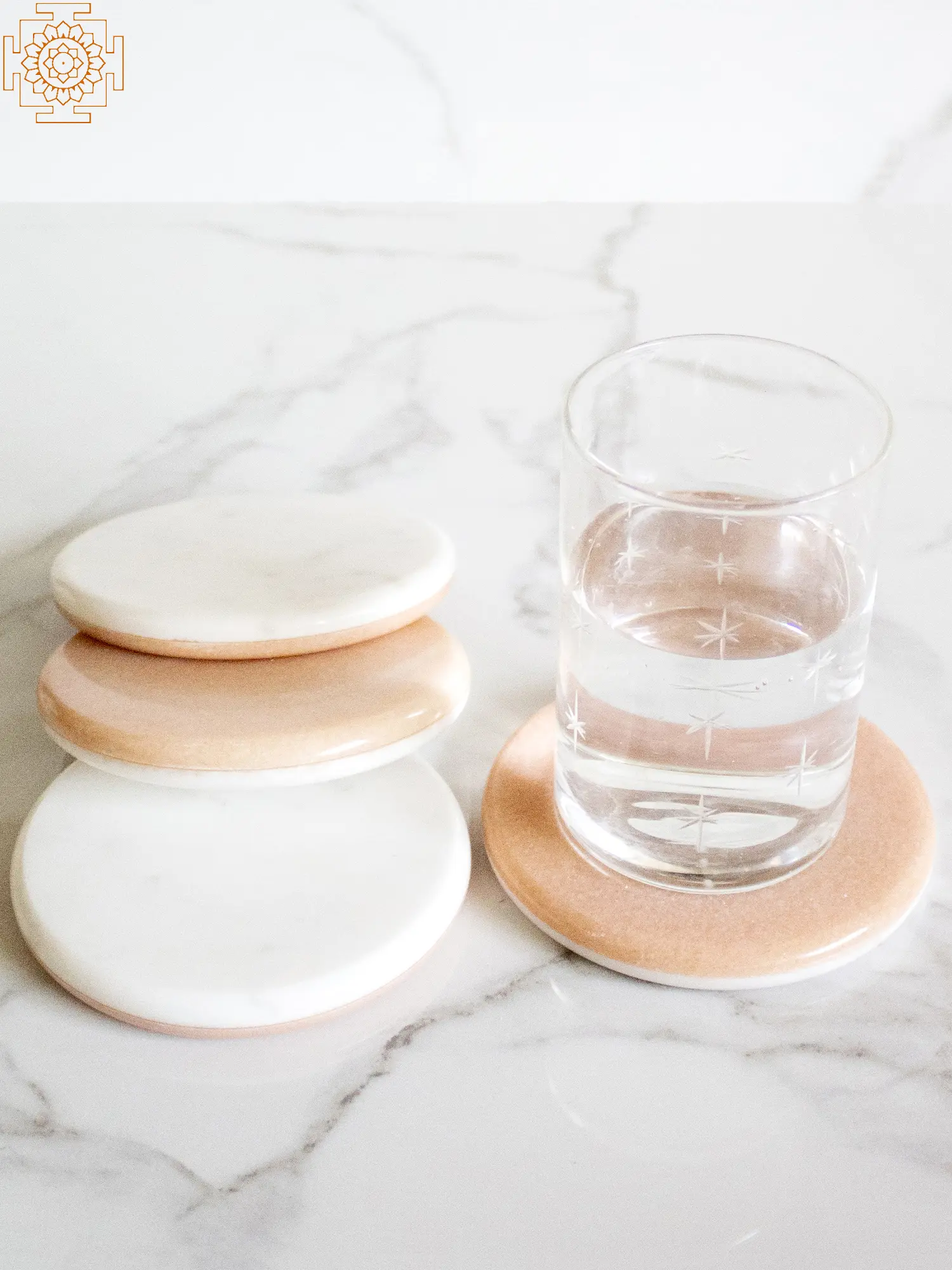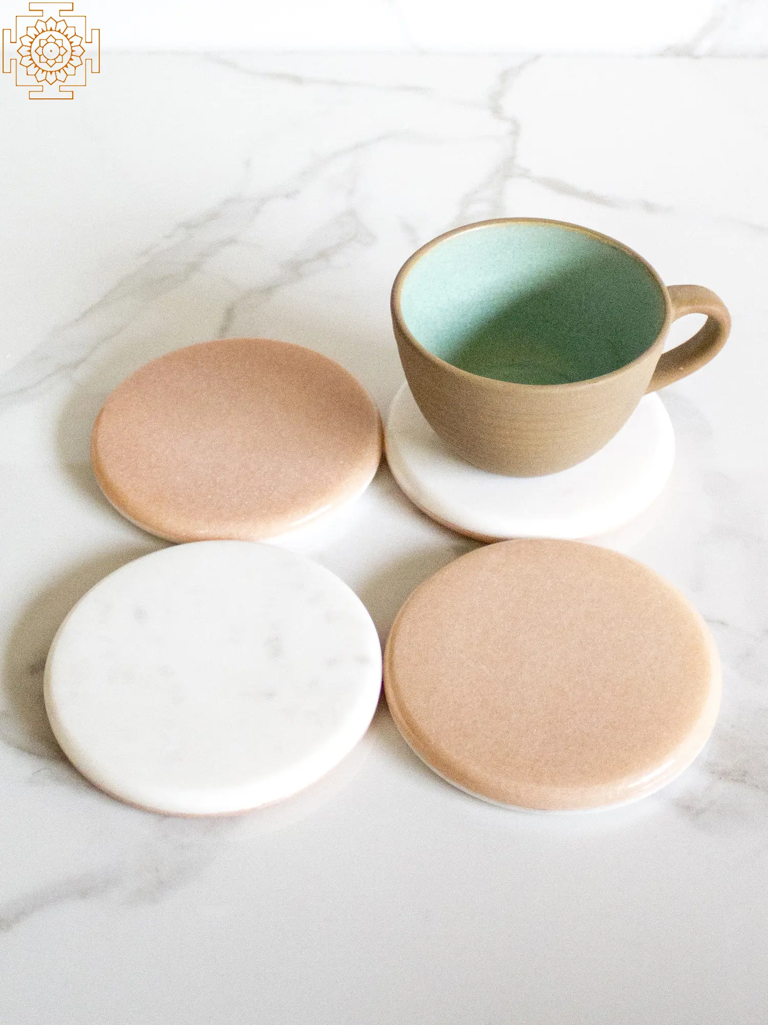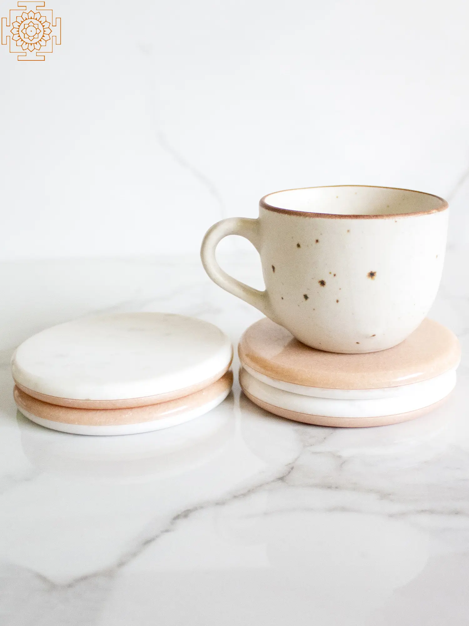 This pink Banswara Marble coaster is constructed in an unusual fashion, with contrasting colors on both sides. The calming blend of pink and white on opposite sides gives it the appearance of a macaroon. The coaster serves as a protective barrier against heat and moisture, keeping your surfaces safe. Its smooth surface ensures effortless glass or cup placement, while the sturdy construction guarantees durability.