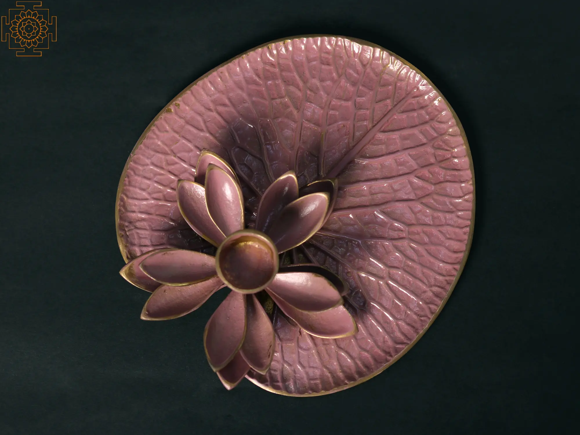 The base is shaped like a realistic lotus leaf, complete with textured veins.