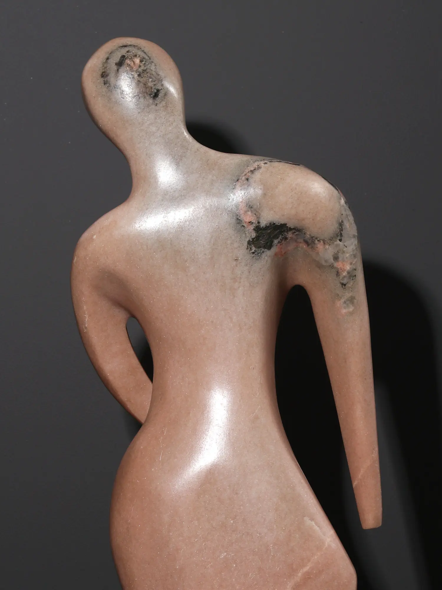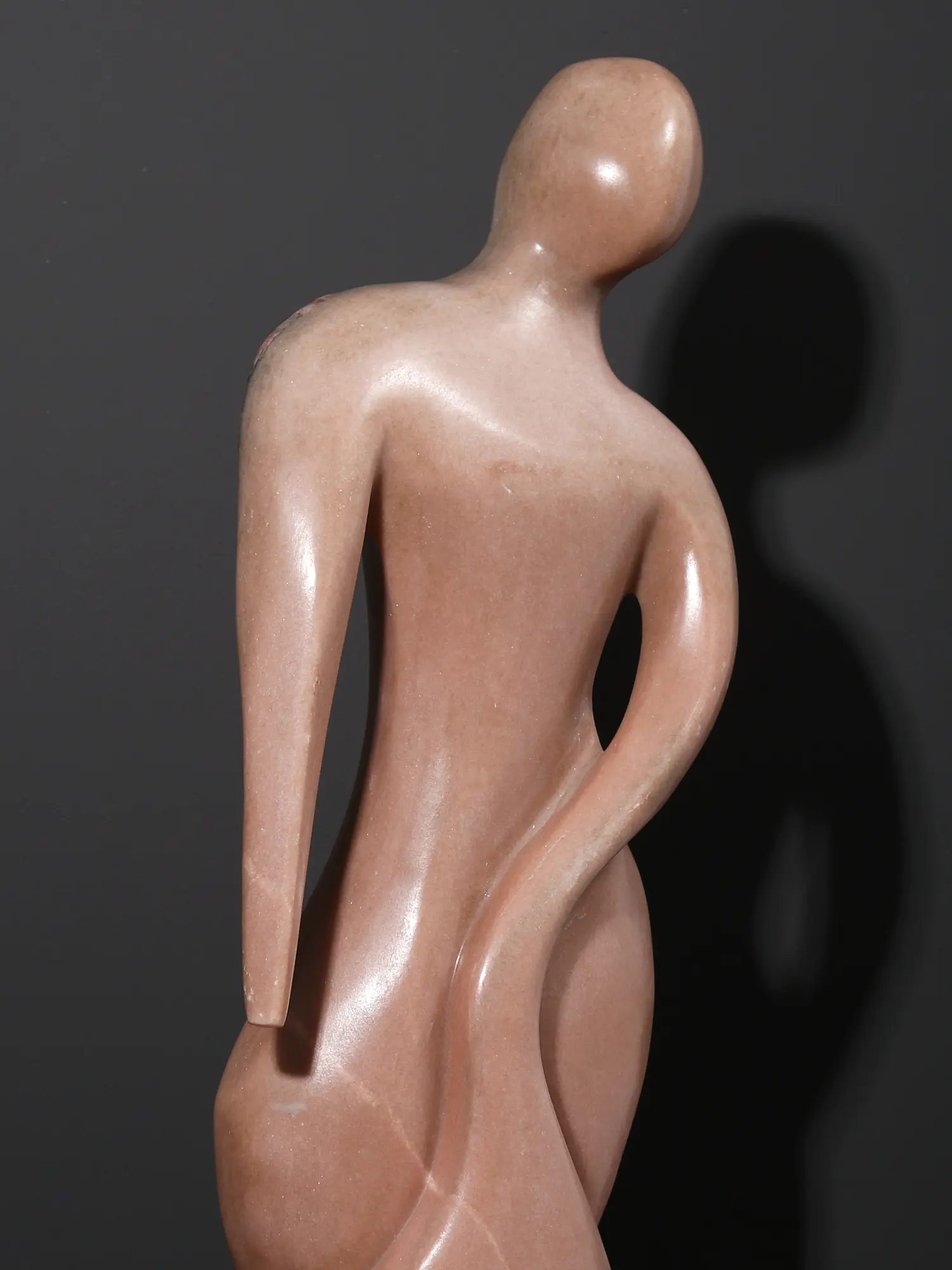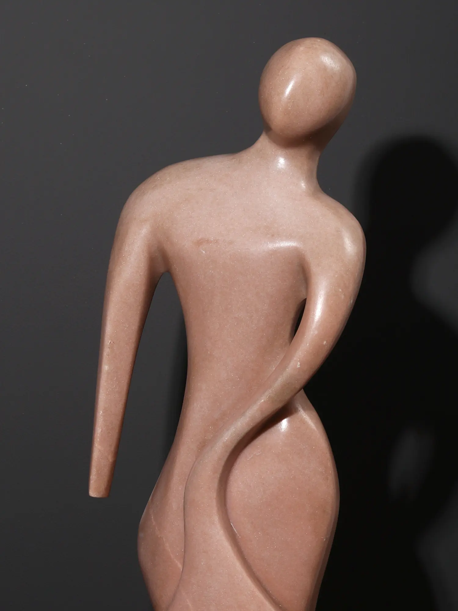 This abstract stone sculpture captures the elegance of human form through a modern, fluid interpretation. Carved from rose-toned marble, the piece evokes motion in stillness- its gentle curves and elongated limbs exude aliveness and elegance. The figure leans forward, poised in a moment of quiet momentum, suggesting both vulnerability and strength.