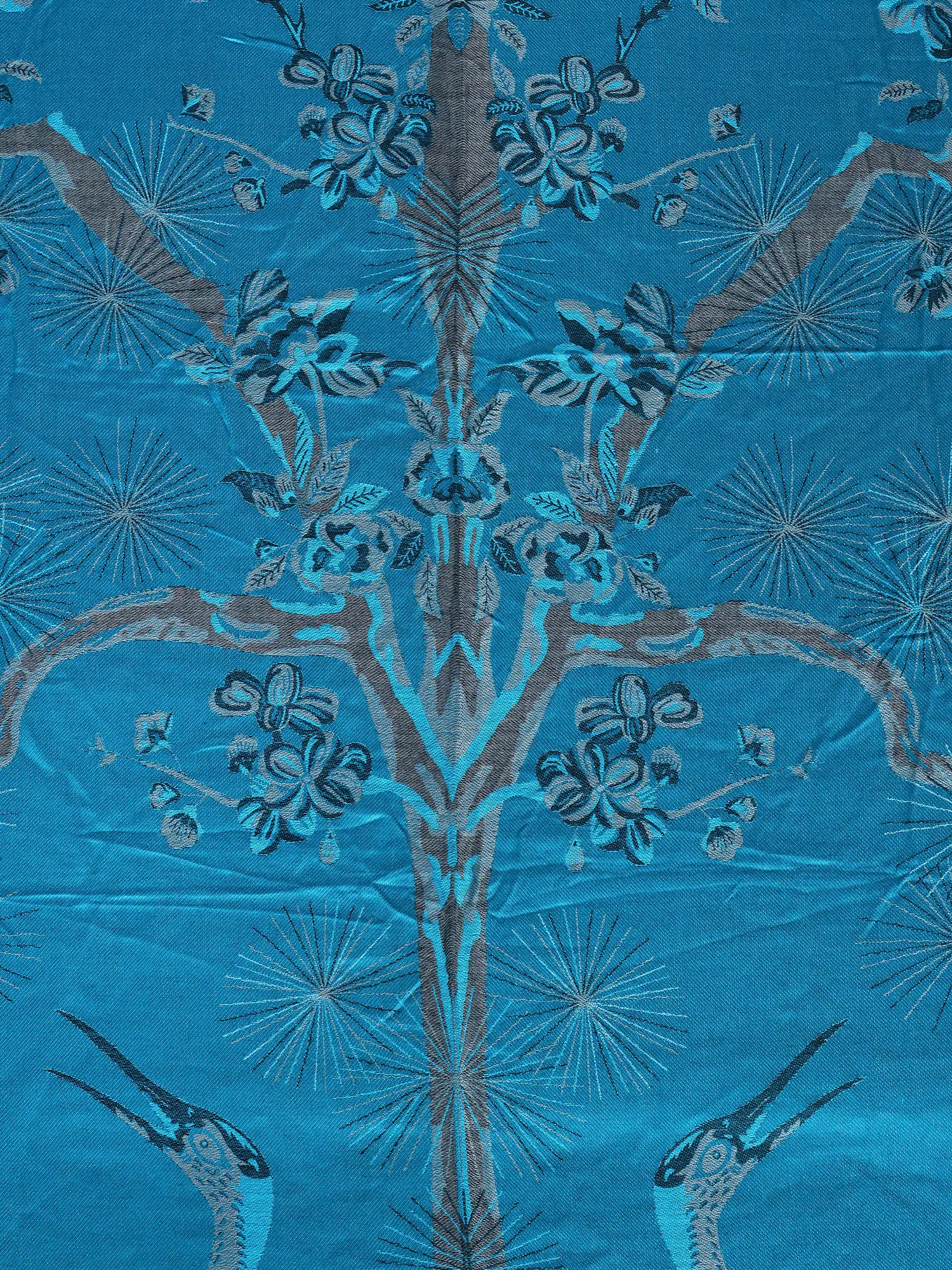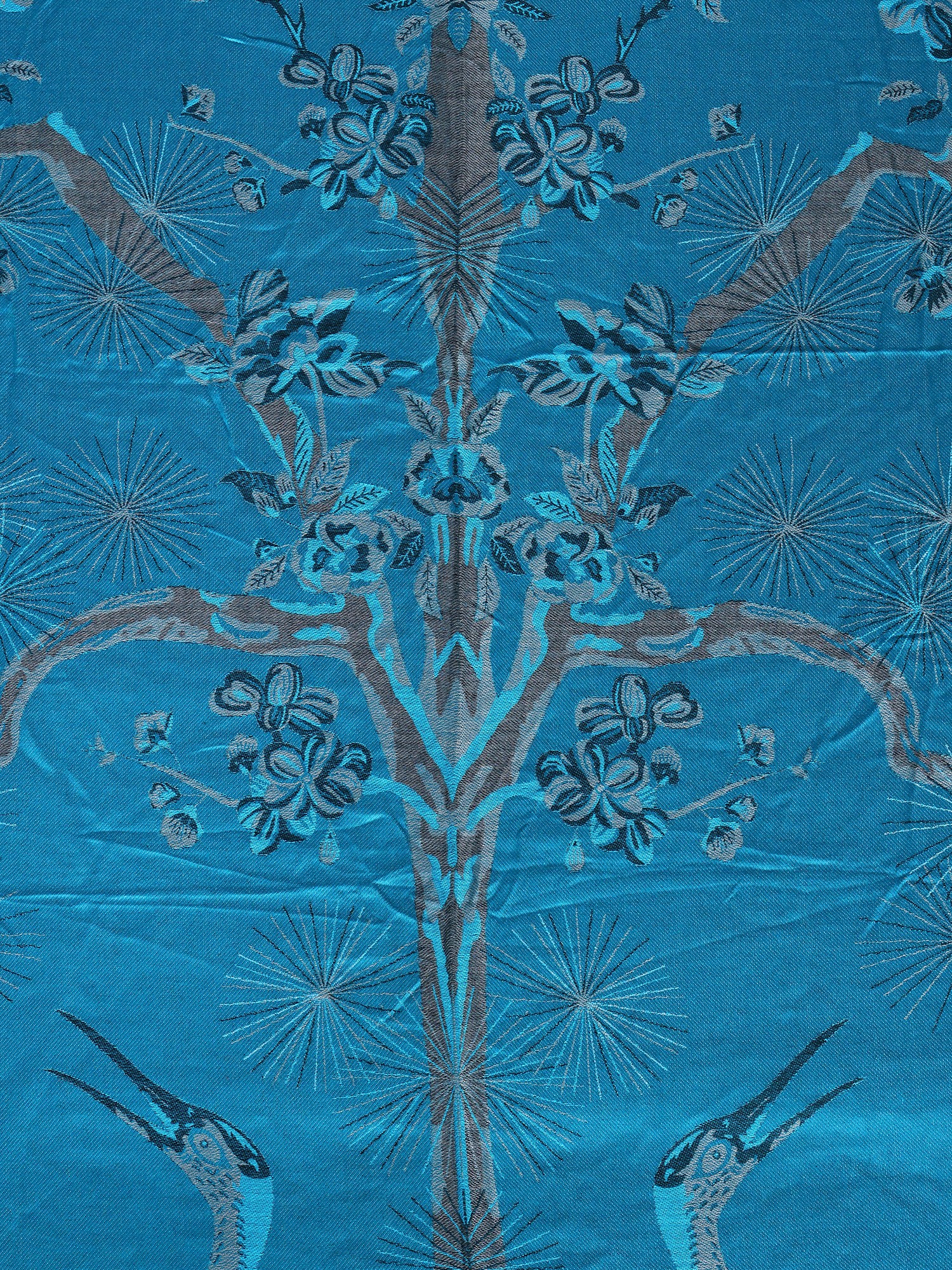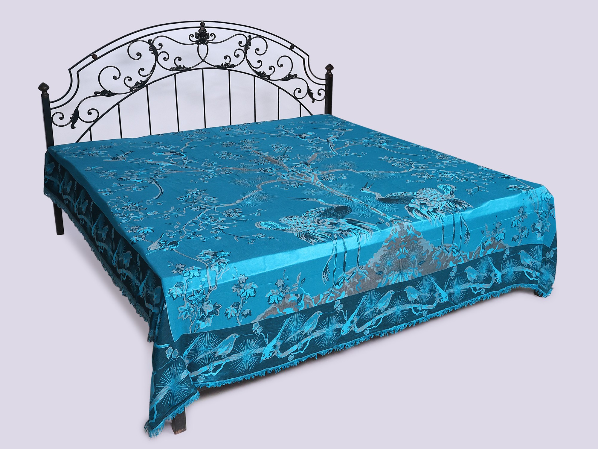 Queen Bedsheet: Reversible Jamawar Style Featuring Tree of Life and Crane Motifs