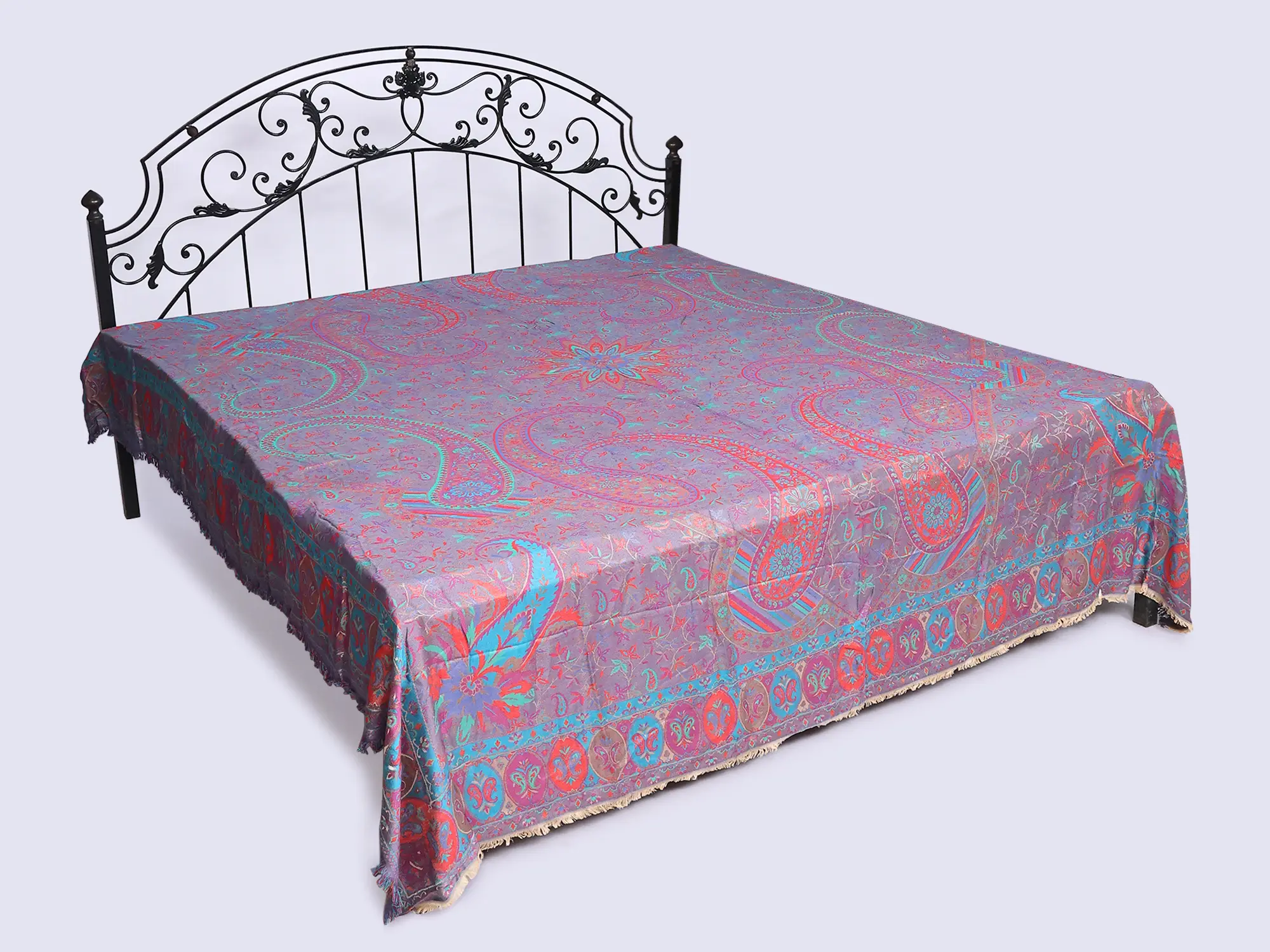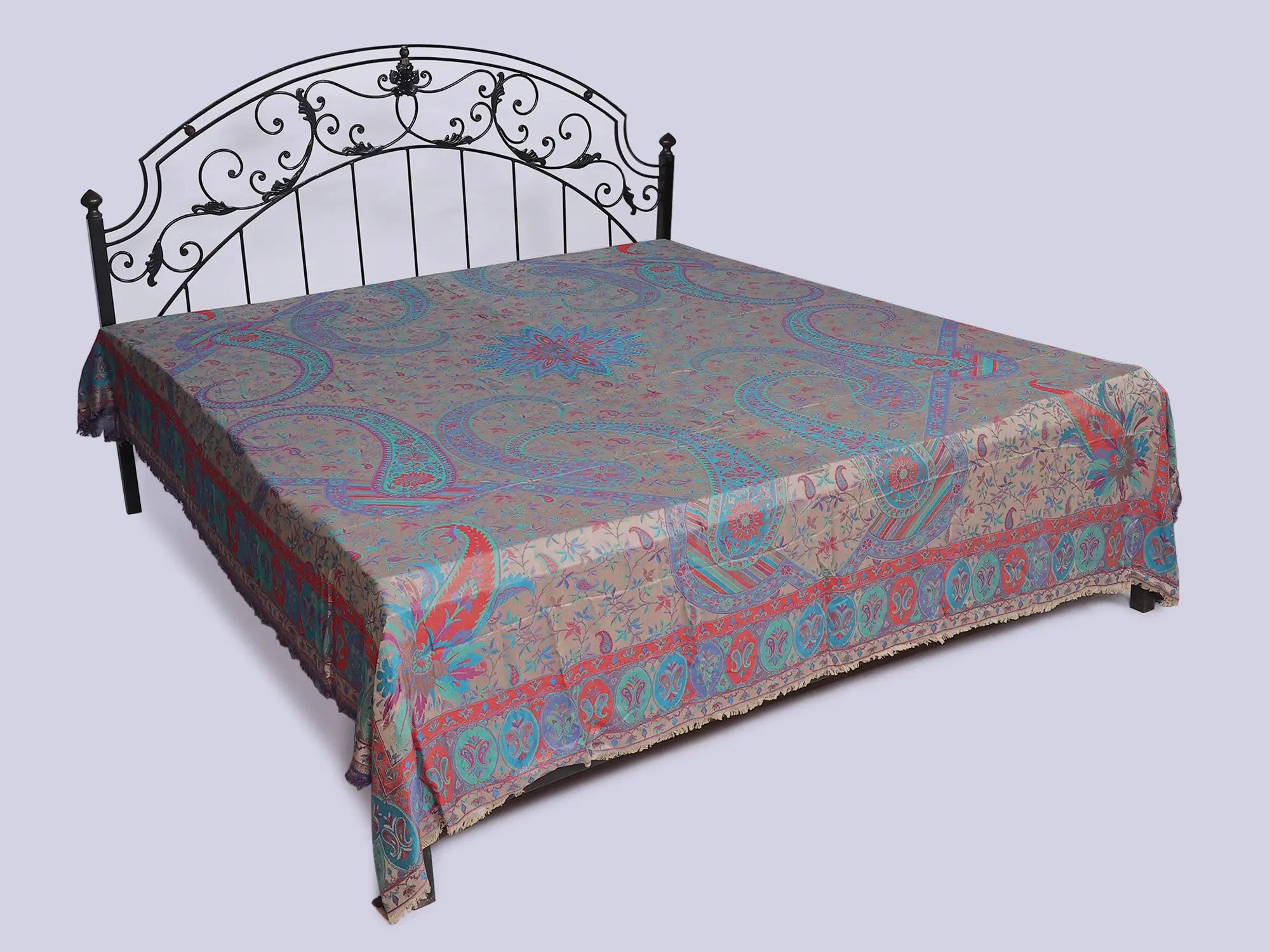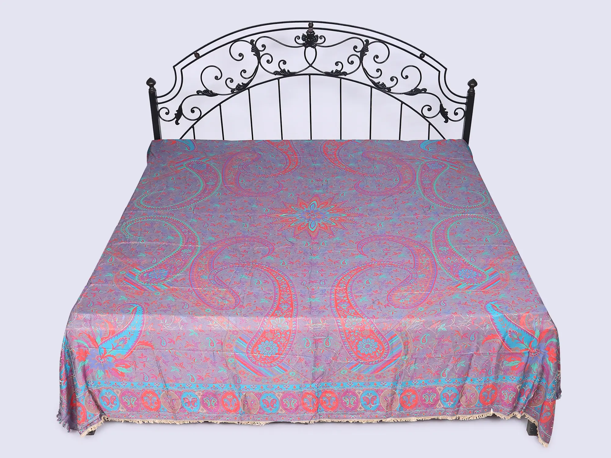 Queen Size Bedspread: Reversible Jamawar Paisley Design