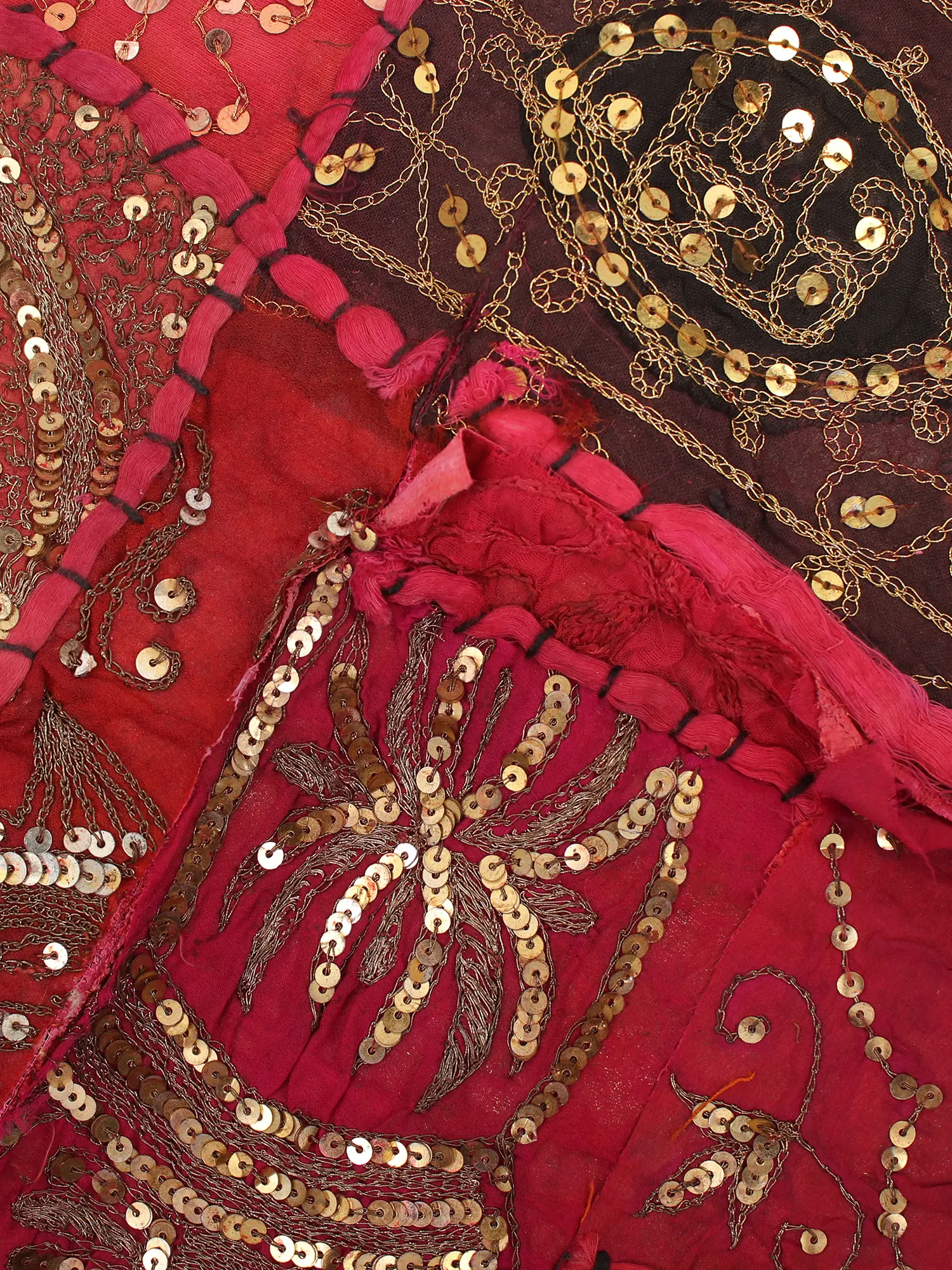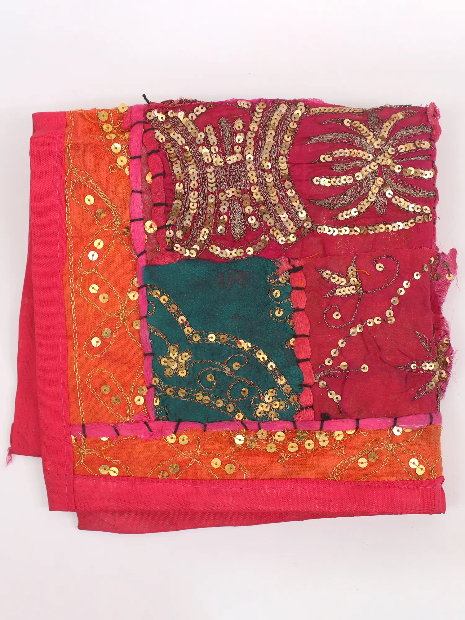 This Rainbow Patchwork Cushion Cover with Sequins and Zari Embroidery is a visually enchanting piece of home decor. The vibrant patchwork, adorned with sequins and Zari embroidery, creates a kaleidoscopic burst of color. This attractive cushion cover is a harmonious blend of traditional craftsmanship and contemporary design, offering a playful and stylish addition to any living space. The combination of sequins and Zari embroidery adds a touch of glamour and intricacy, elevating the cover's aesthetic appeal. It stands as a testament to creativity, making it a captivating and delightful accent for sofas or beds.