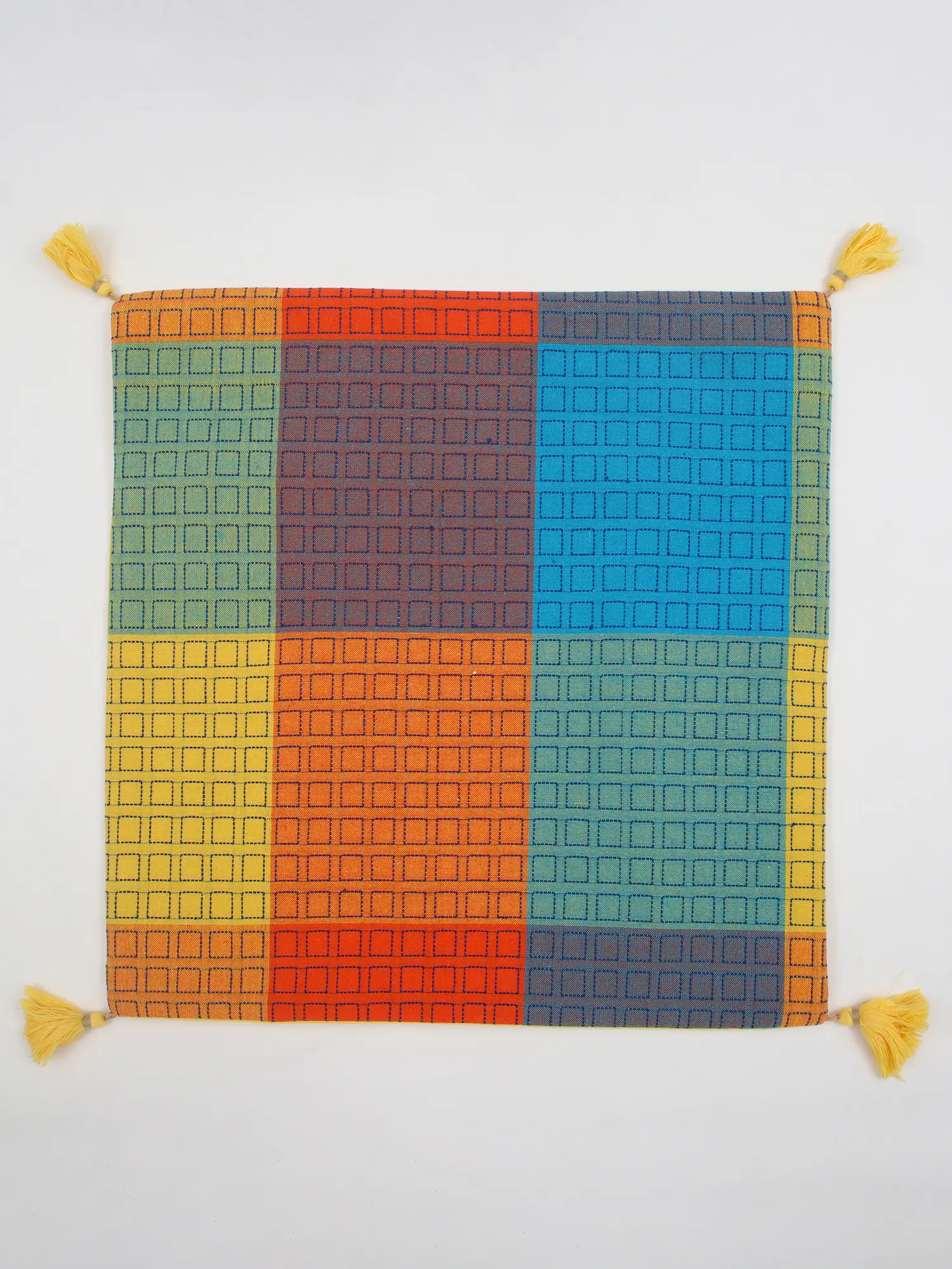 This Rainbow Woven Check Pattern Cushion Cover with Tassels is a splendid home decor addition, infusing a soothing aesthetic into any sofa or seating arrangement. The woven check pattern, with its rainbow hues, creates a harmonious blend of colors that exudes tranquility. The addition of tassels adds a touch of elegance and playfulness, enhancing the overall appeal.