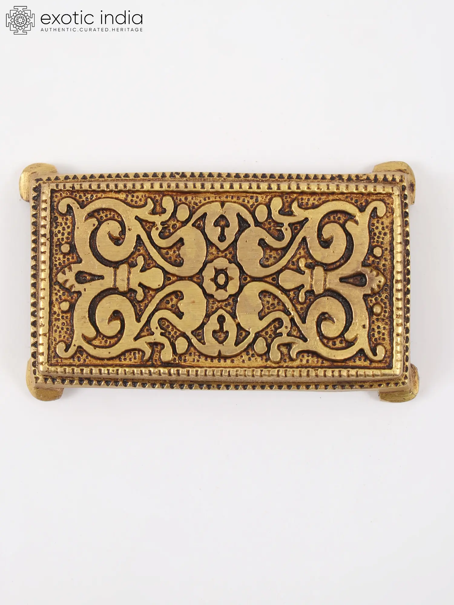This Rectangular Shape Peacocks Design Brass Chowki/Pedestal is an exquisite piece blending artistry with functionality. Its rectangular form is adorned with intricate peacock designs, reflecting elegance and cultural symbolism. This ornate chowki serves as a divine pedestal for religious idols or ritual items, enhancing the aesthetic appeal of worship spaces. The peacock motif, often associated with spirituality, adds a sacred touch. This brass chowki beautifully combines traditional design elements with practicality, making it a perfect choice for those seeking a refined and culturally resonant addition to their sacred rituals.