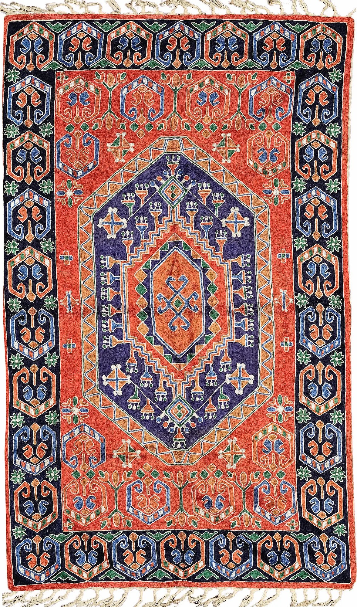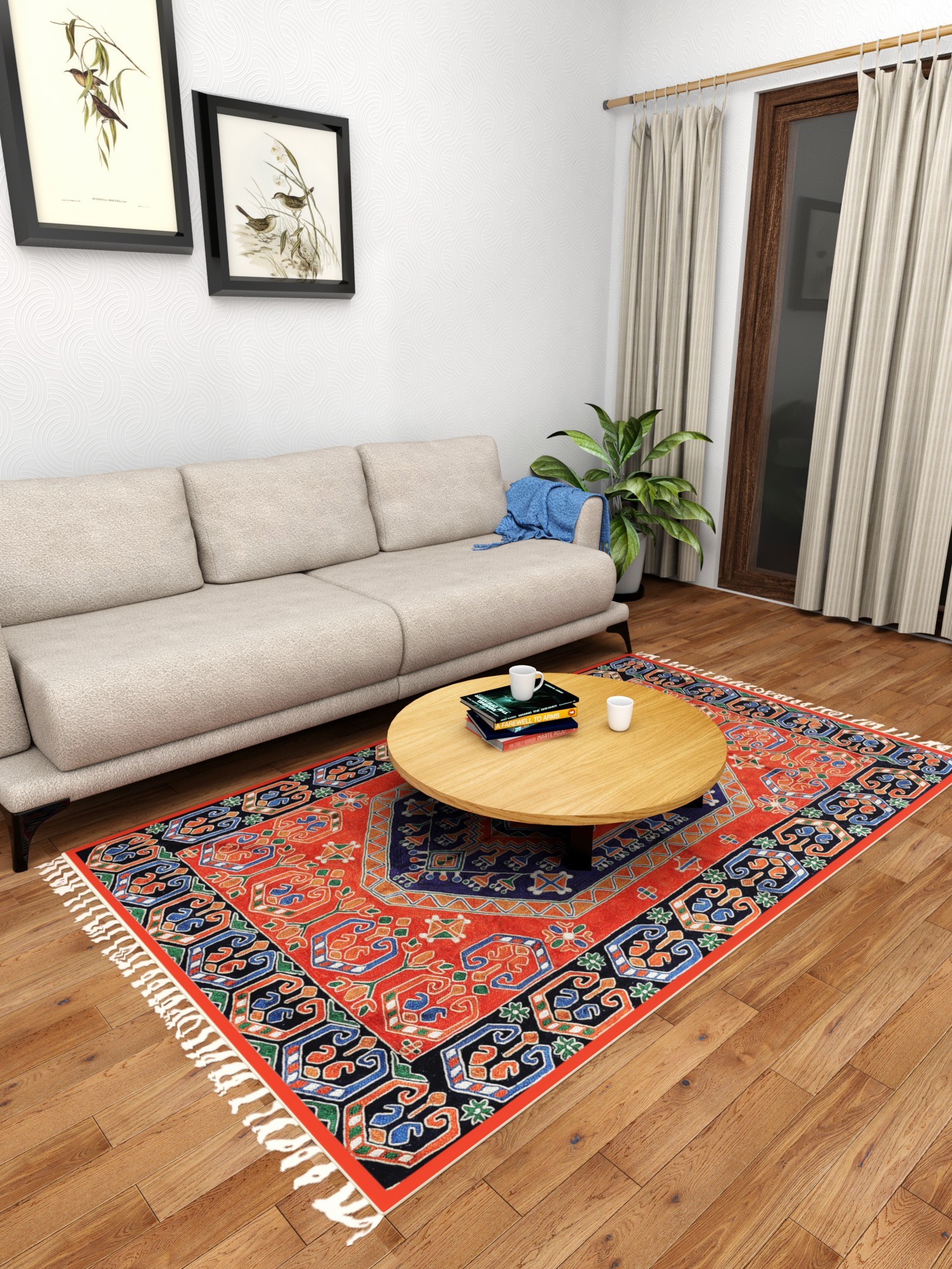 Now any protruding knots and extra threads are cut off using scissors and clippers. Now the craftsmen ensure that all four sides of the carpet and weaves are locked by stitches so that the carpet remains intact and strong.