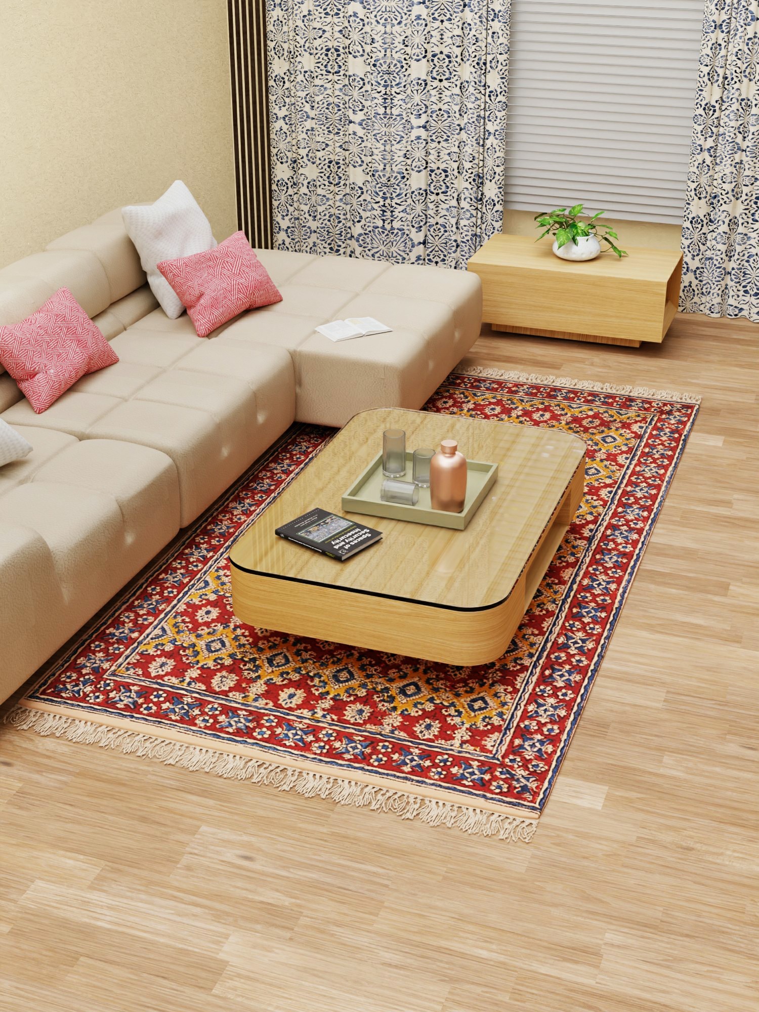 Now any protruding knots and extra threads are cut off using scissors and clippers. Now the craftsmen ensure that all four sides of the carpet and weaves are locked by stitches so that the carpet remains intact and strong.