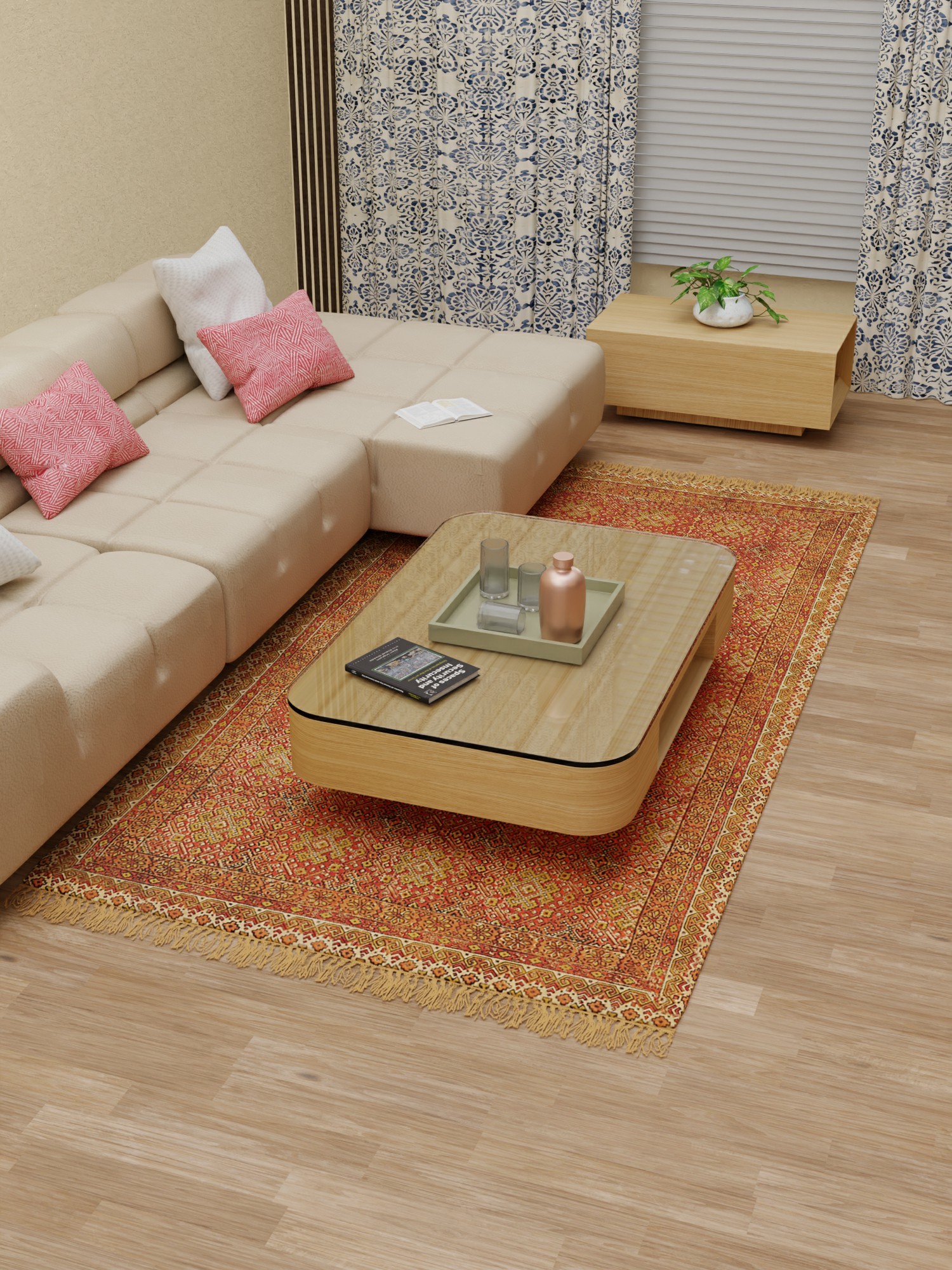A carpet serves as a textile floor covering and can be seen in almost all Asian homes. European nations also are fascinated by their beauty and thus hand-knotted carpets are in great demand all over the world. A carpet typically consists of an upper layer of fabric and backing attached to it. Carpets can be made in any color by using dyed fibers. Different types of motifs and patterns are fabricated or embroidered on the fabric to beautify the floor. Indian craftsmen make carpets in such a way that every piece bears designs with attention to detail. Bright colors and high-quality fabric are used for their production.