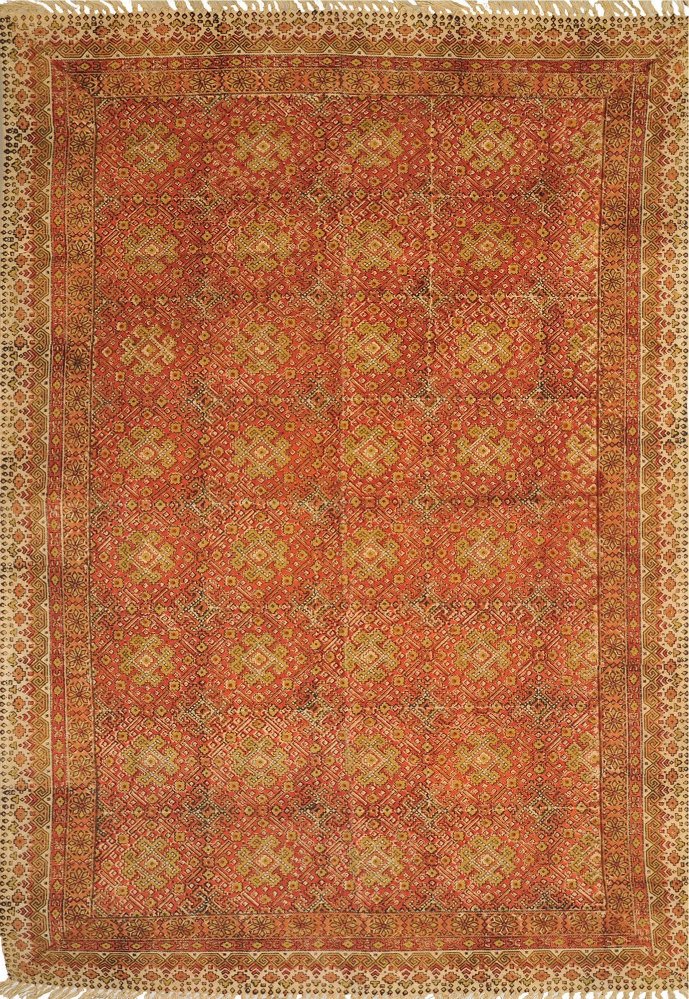 Hand-knotted carpets are made using different types of techniques such as the Turkish knot (symmetrical), Persian knot (asymmetrical), Jufti Knot (tied around four warps instead of two), or Spanish knot (solo warp symmetrical). Common materials used in the making of the finest carpets are cotton, silk, wool, and jute.