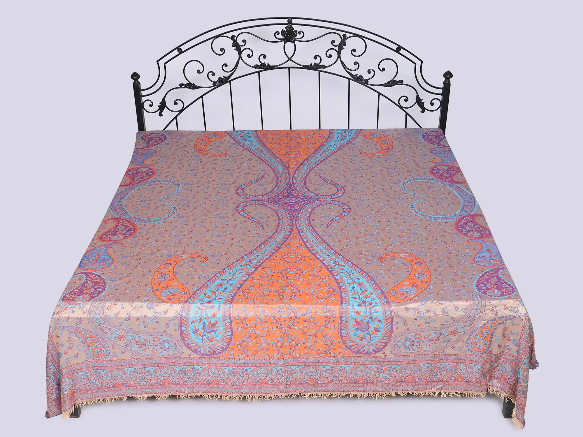 Reversible Jamawar Bedspread with Woven Tree of Life