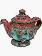 Decorative Silver Kettle with Gemstone Mosaic and Handle