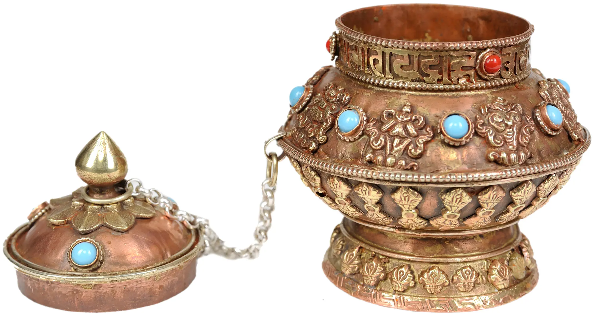 8" Beautiful Tibetan Filigree Kettle in Copper Silver Plated | Home And kitchen Item