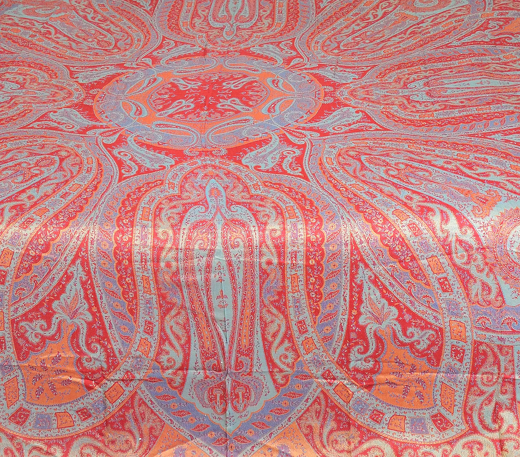 Rococco-Red Reversible Super-Silk Jamawar Bedspread with Woven Paisleys