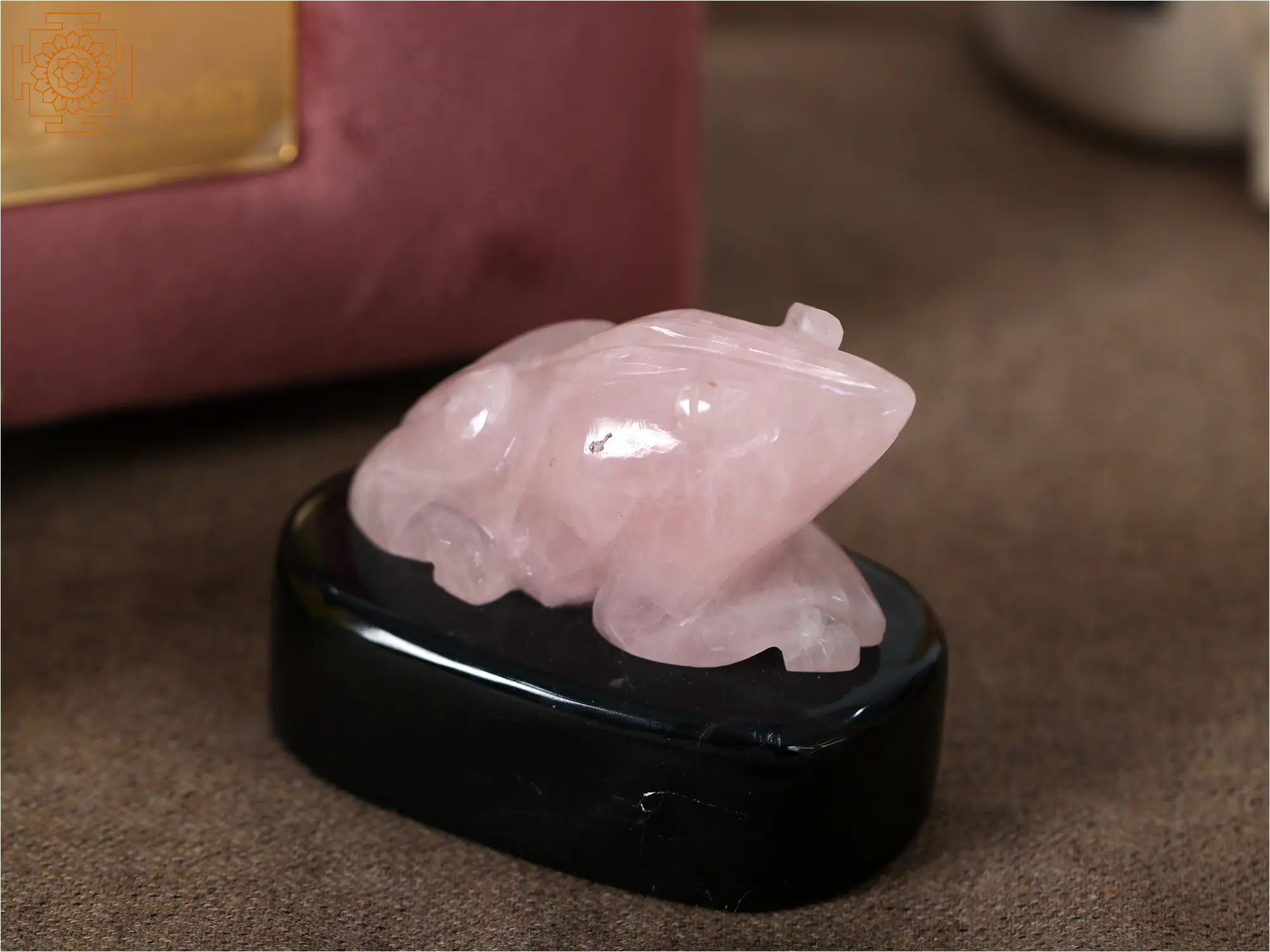 Bewitched with the beauty of this Rose Quartz Frog on a Black Agate Pedestal, thoughtfully presented in a Gift Box. The delicate pink hues of Rose Quartz envelop the charming frog as it gracefully perches on the grounding Black Agate pedestal. Beyond its visual allure, the frog embodies the essence of longevity and growth, symbolized by its leaps forward. This intricately carved masterpiece serves not only as a testament to the beauty of natural stones but also as a thoughtful reminder of the enduring cycles of life. Gifted in a charming box, it encapsulates both grace and symbolism.
