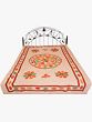Rugby-Tan Stonewashed Single-Bed Bedspread from Jaipur with Applique Flowers and Mirrors