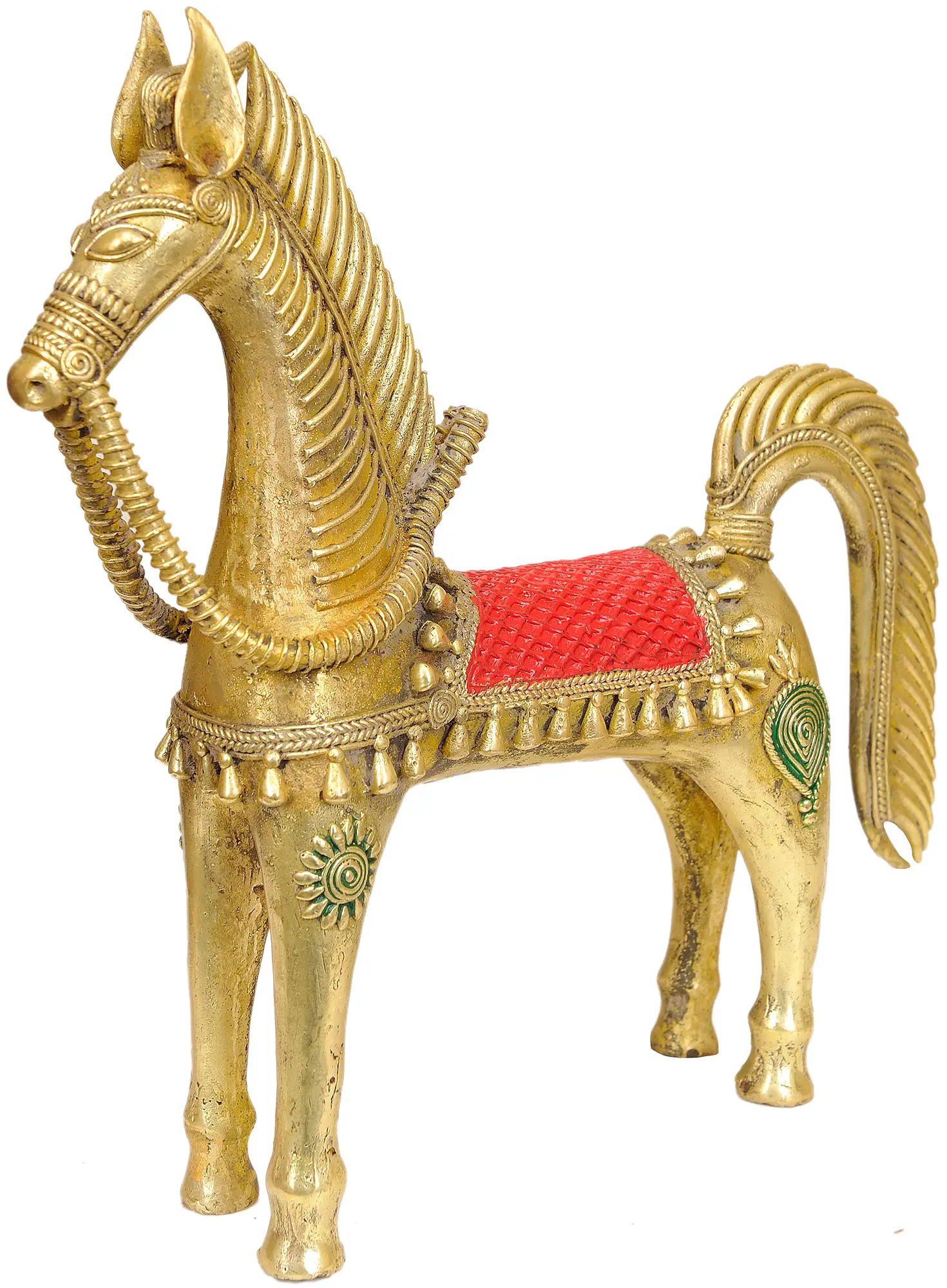 Brass Horse Statue with Ornate Saddle