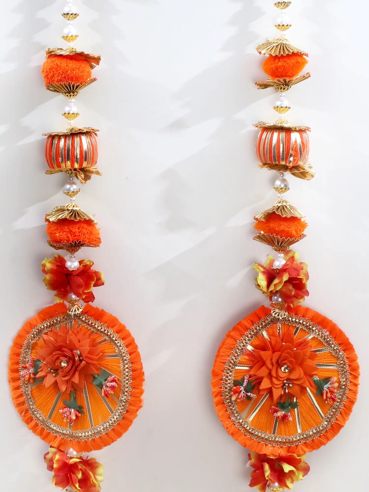 With this “Toran,” enter a world of heavenly splendour. Made with reverence, this “Toran” embodies the rich hues of saffron, symbolising auspicious beginnings and prosperity. Decorated with tassels and beads, it narrates tales of tradition and grace.