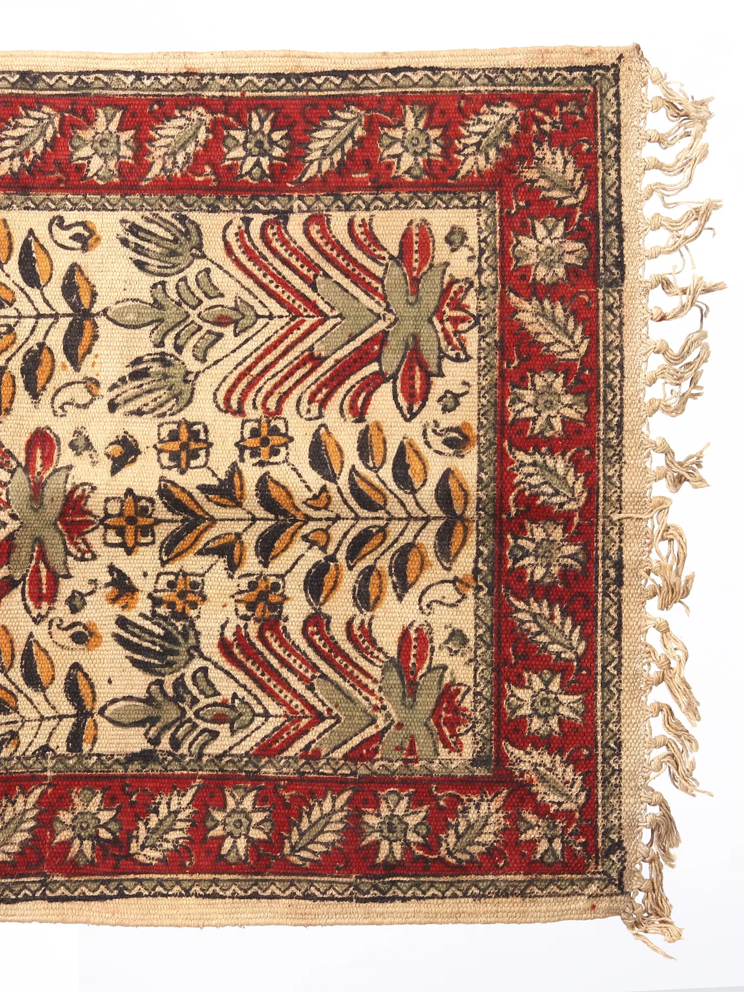 Transform your yoga practice with the Sand Kalamkari Printed Yoga Carpet from Telangana - adorned with Kalamkari prints, this carpet reflects the artistic heritage of Telangana, inspiring mindfulness and serenity with every pose. Its soothing sand hues and floral motifs create a serene ambiance, inviting you to connect with your inner self.