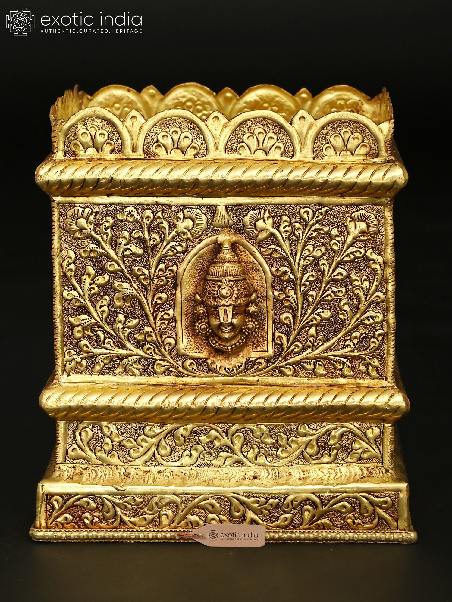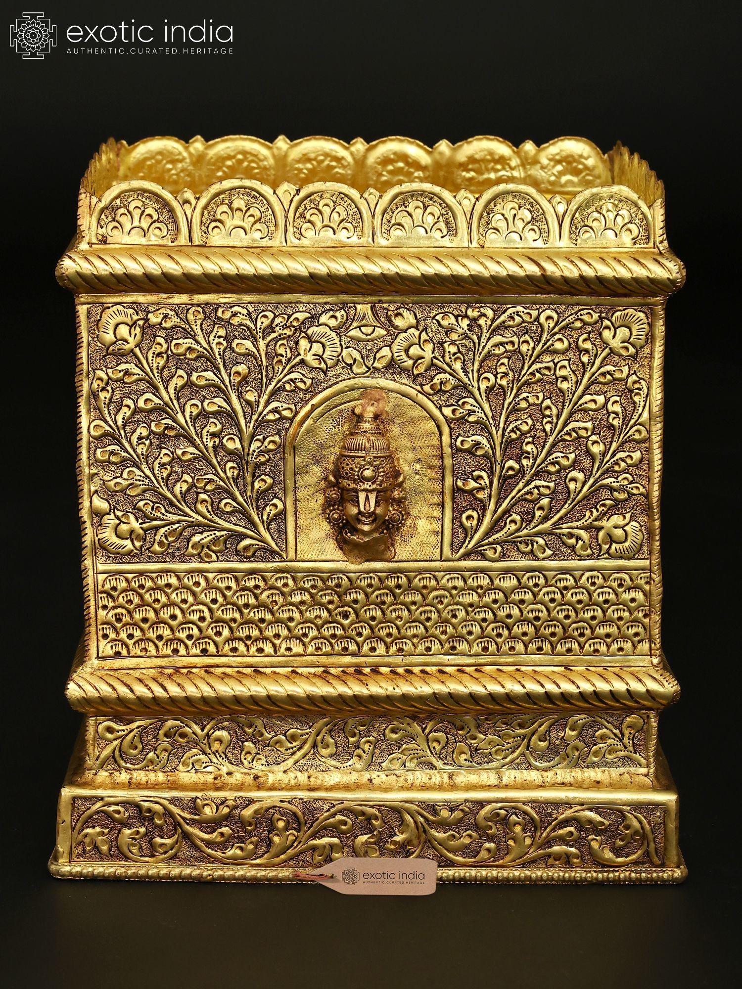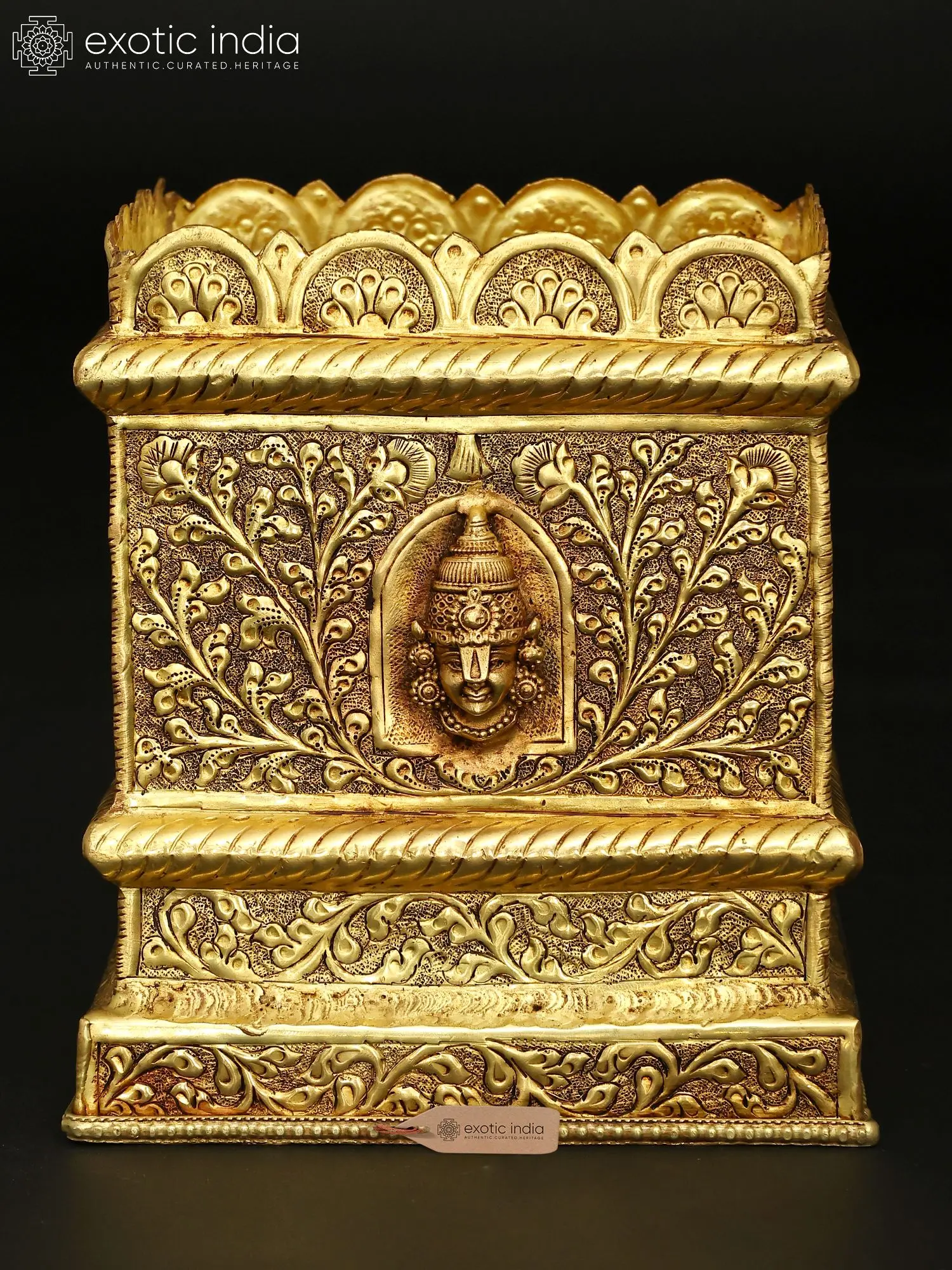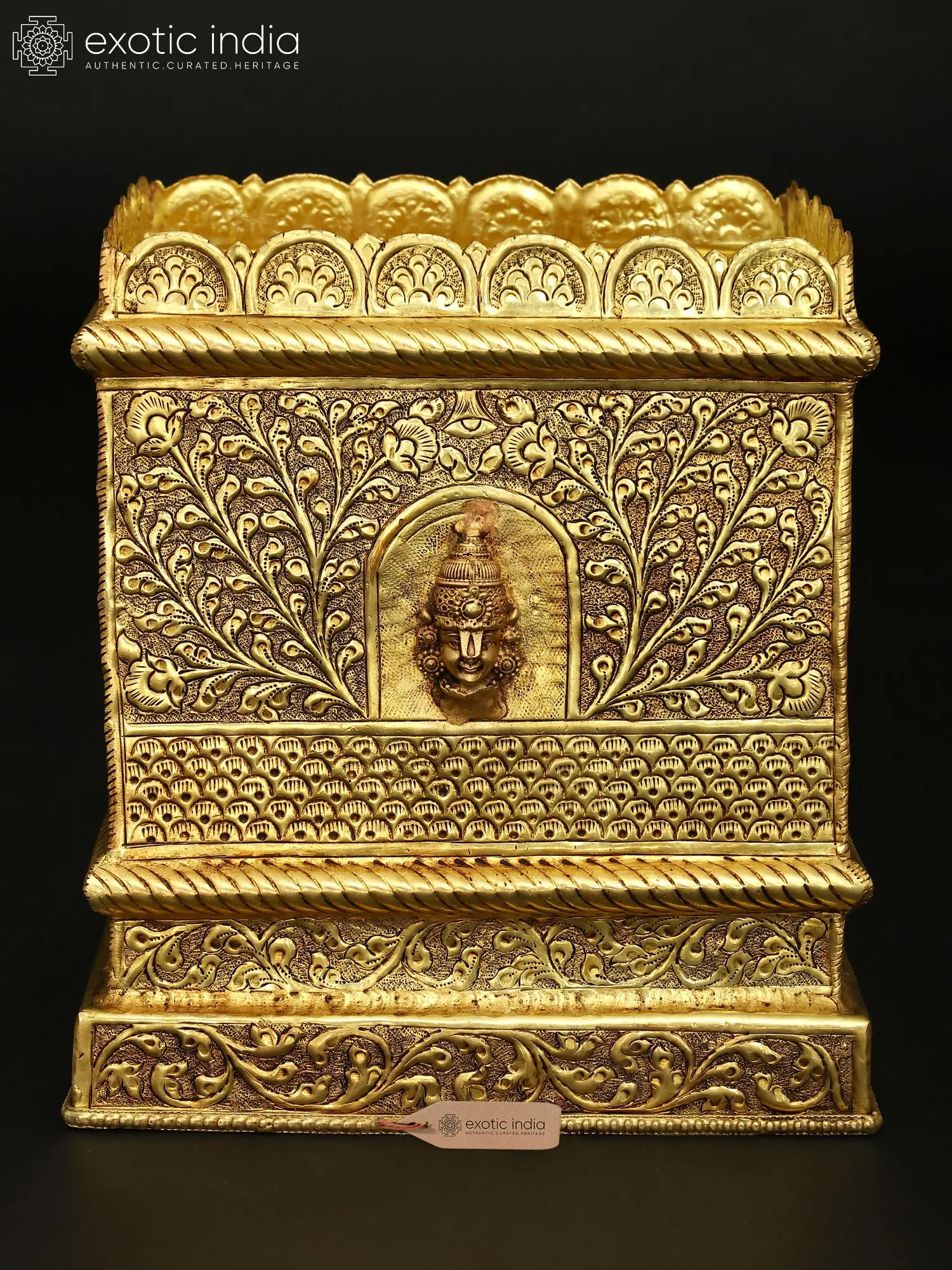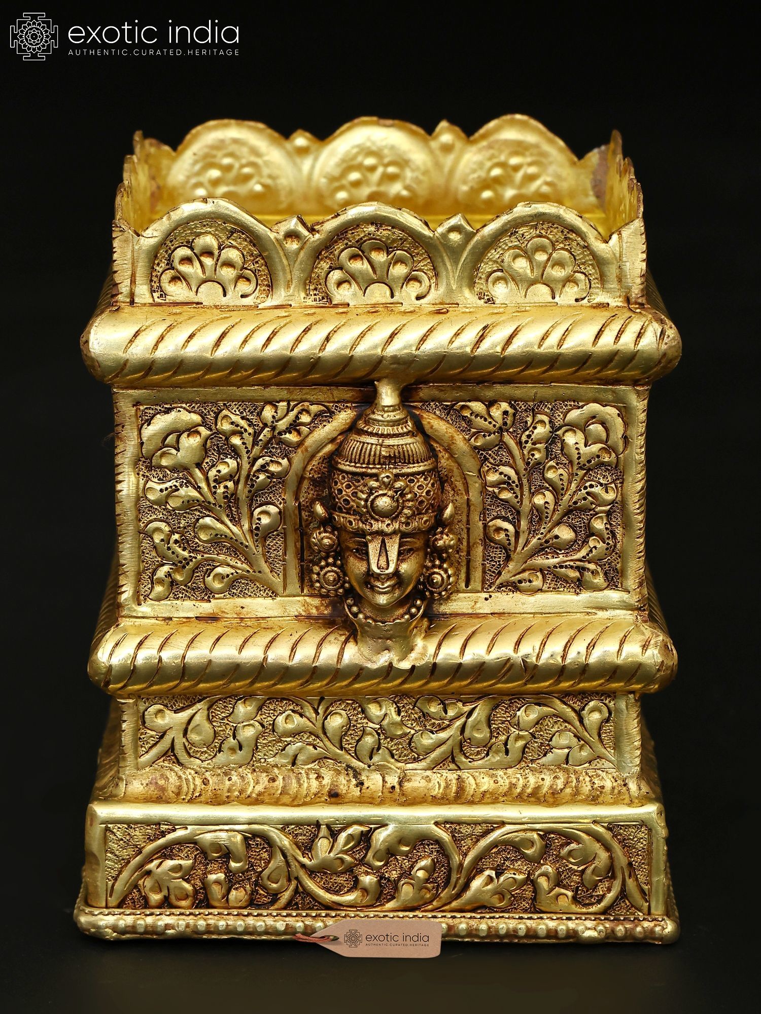 Ornate Brass Planter with Vaishnav Motifs - Shankh, Chakra, and Tilak
