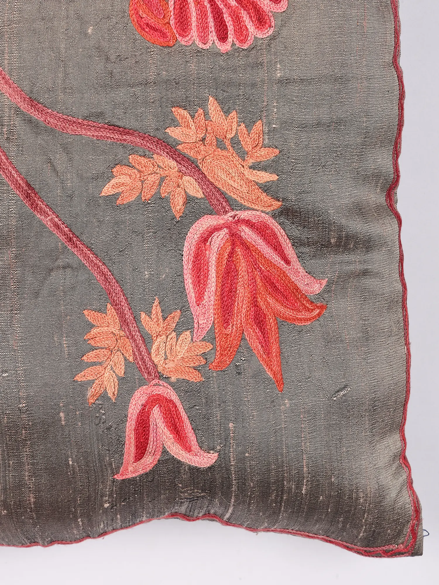 These covers are born from the skilled hands of Kashmiri artisans, who meticulously adorn a luxurious art silk base with the traditional Ari embroidery. Each stitch is a testament to generations of craftsmanship, ensuring a unique and high-quality finish. The rich, flowing motifs are carefully applied, creating a tactile and visual experience that speaks of true dedication.
