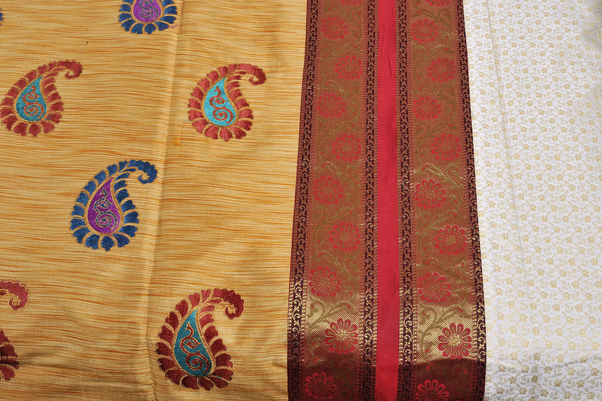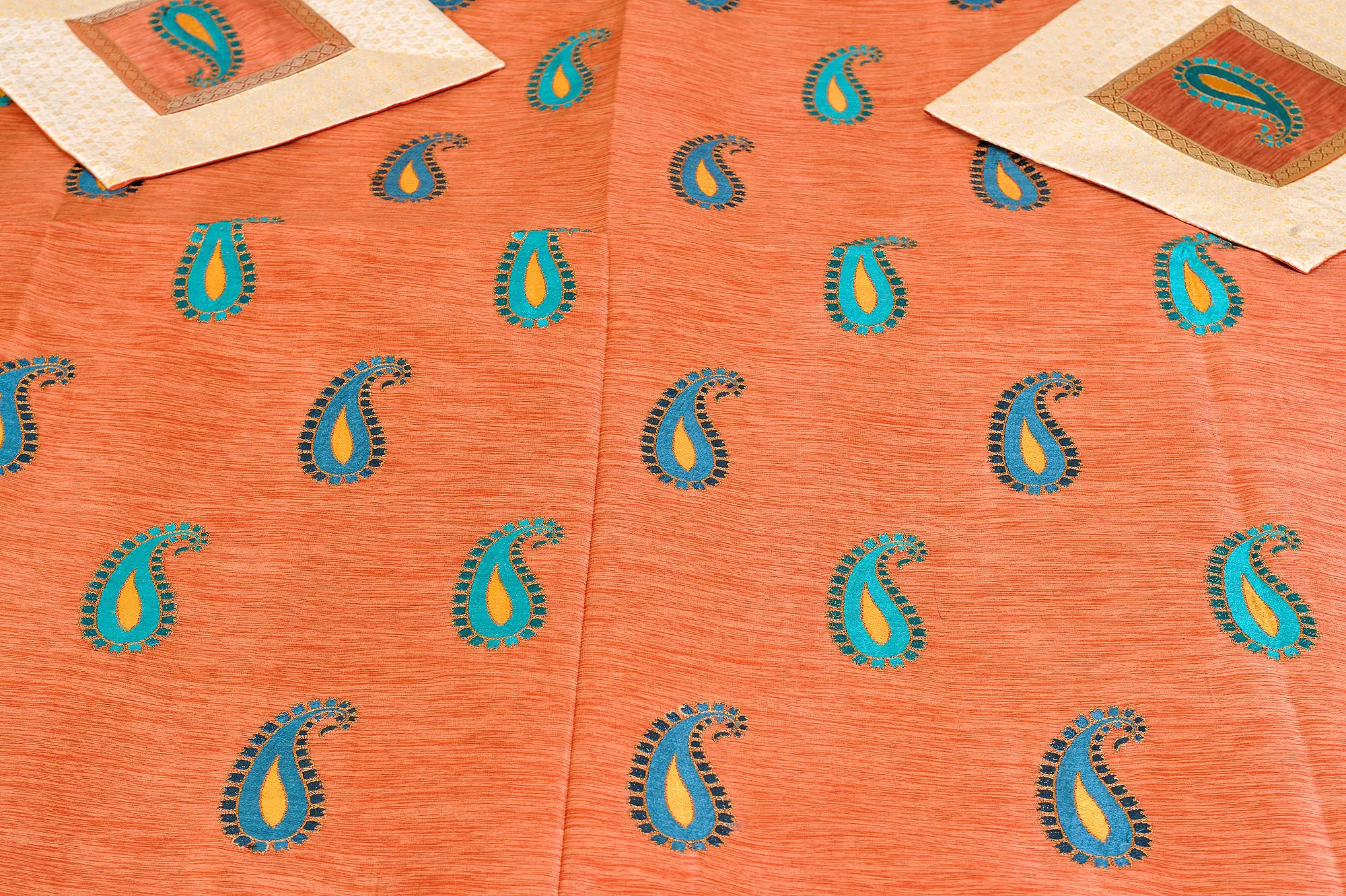 The Seven-Piece Banarasi Bedspread is a symphony of opulence and artistry. This premium set features intricate floral weaves and embroidered paisleys that transform your bedroom into a canvas of elegance. Crafted with precision, it offers not just a bedspread but a luxurious experience. Drift into the world of dreams, enveloped in the comfort and beauty of Banarasi craftsmanship. Each piece can be used to adorn your bed, while the entire set adds an air of grandeur to your space. Embrace the luxury of this bedspread, where every sleep is a dream in the lap of art and comfort.