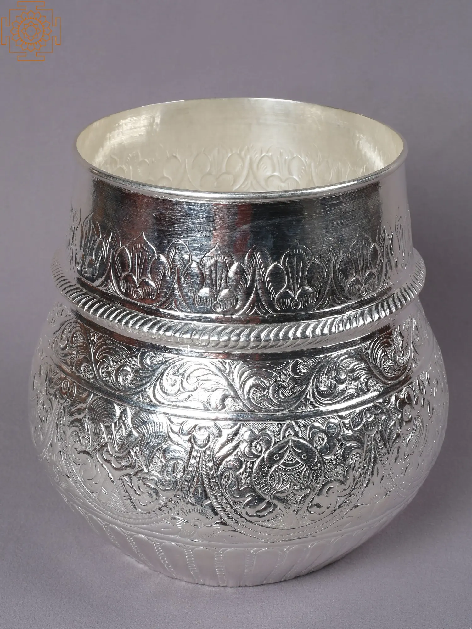 The Silver Mana from Nepal is a sacred and intricately crafted ritual object, revered for its spiritual significance and exquisite craftsmanship. Made from fine-quality silver, this Mana is adorned with traditional Nepali engravings and Asthamangala symbols, symbolizing auspiciousness and divine blessings. The Mana holds profound spiritual significance in Nepali culture and religious rituals.