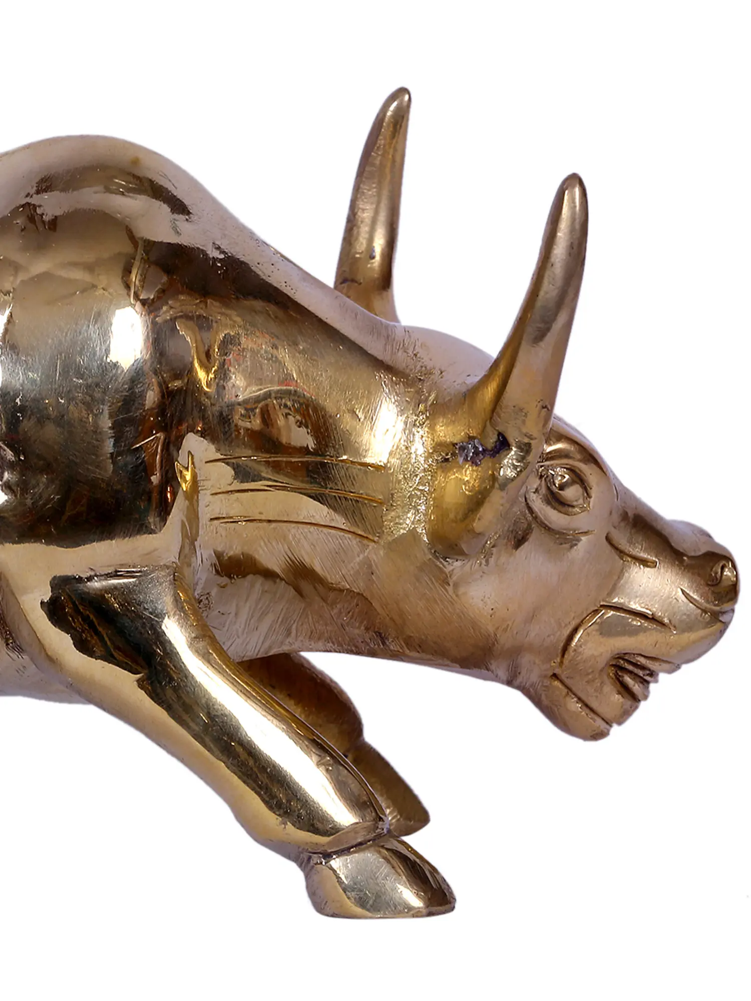 “Furious Attacking Bull” is the glorious personification of power and passion. Designed from shiny gold-plated brass, this masterwork captures the charging bull's raw energy and unwavering tenacity. Symbolising strength, resilience, and the unyielding spirit of conquest, it is an eternal representation of overcoming obstacles with ferocity. Whether adorning your office space, home decor, or gifting to a valiant soul, its presence exudes confidence and drive. A tribute to indomitable will and unwavering resolve, this artwork inspires courage, evoking the primal instinct to face challenges head-on.