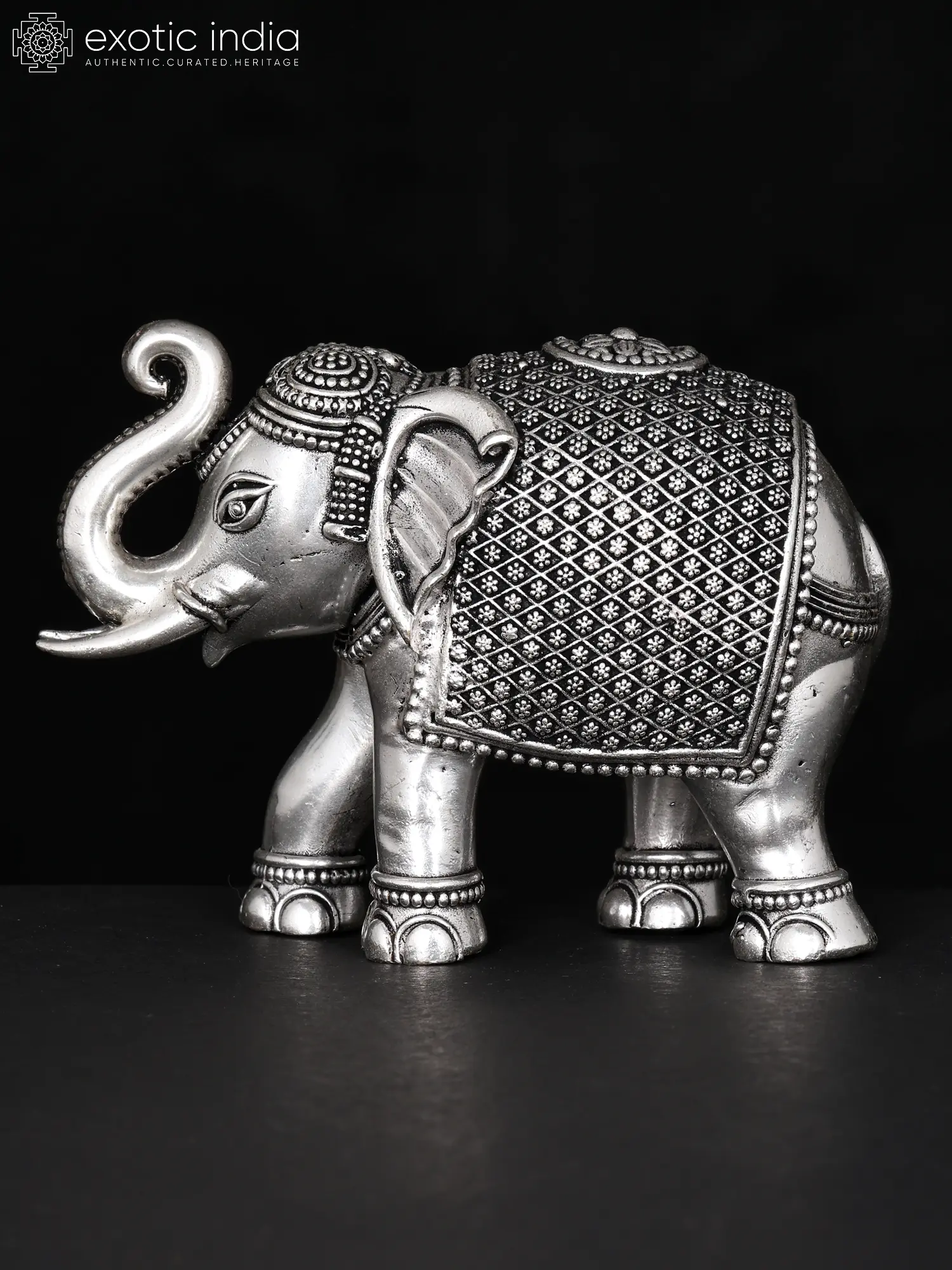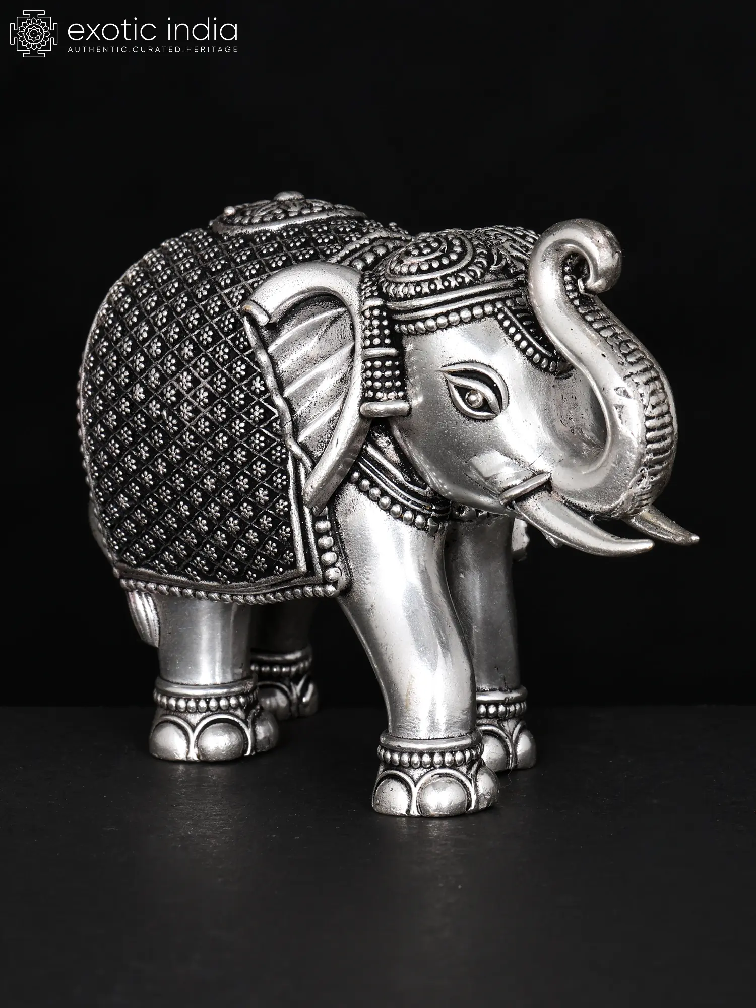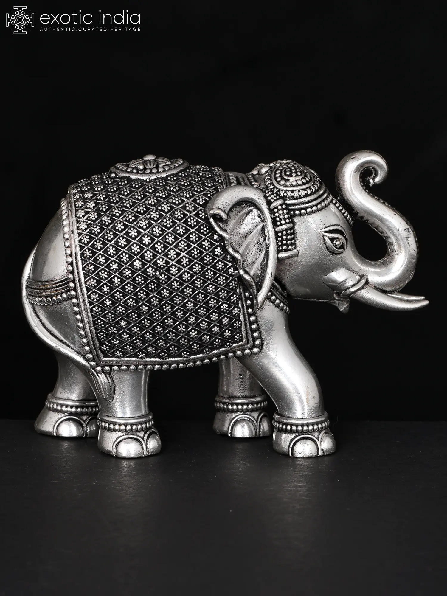 Intricate etching work on the back and head of the elephant speaks for the skills of the artist, who has ornamented the miniature decor piece with beauty and precision.