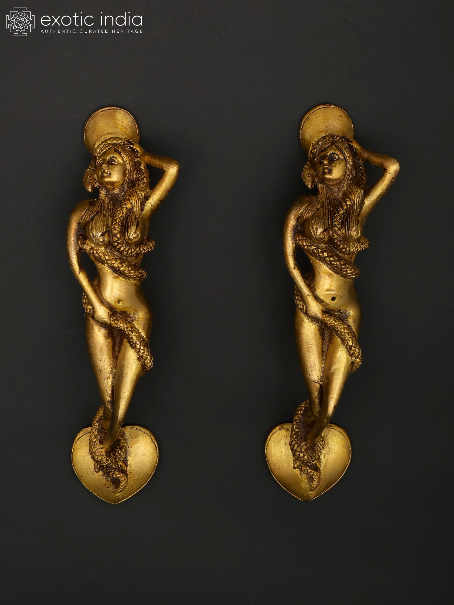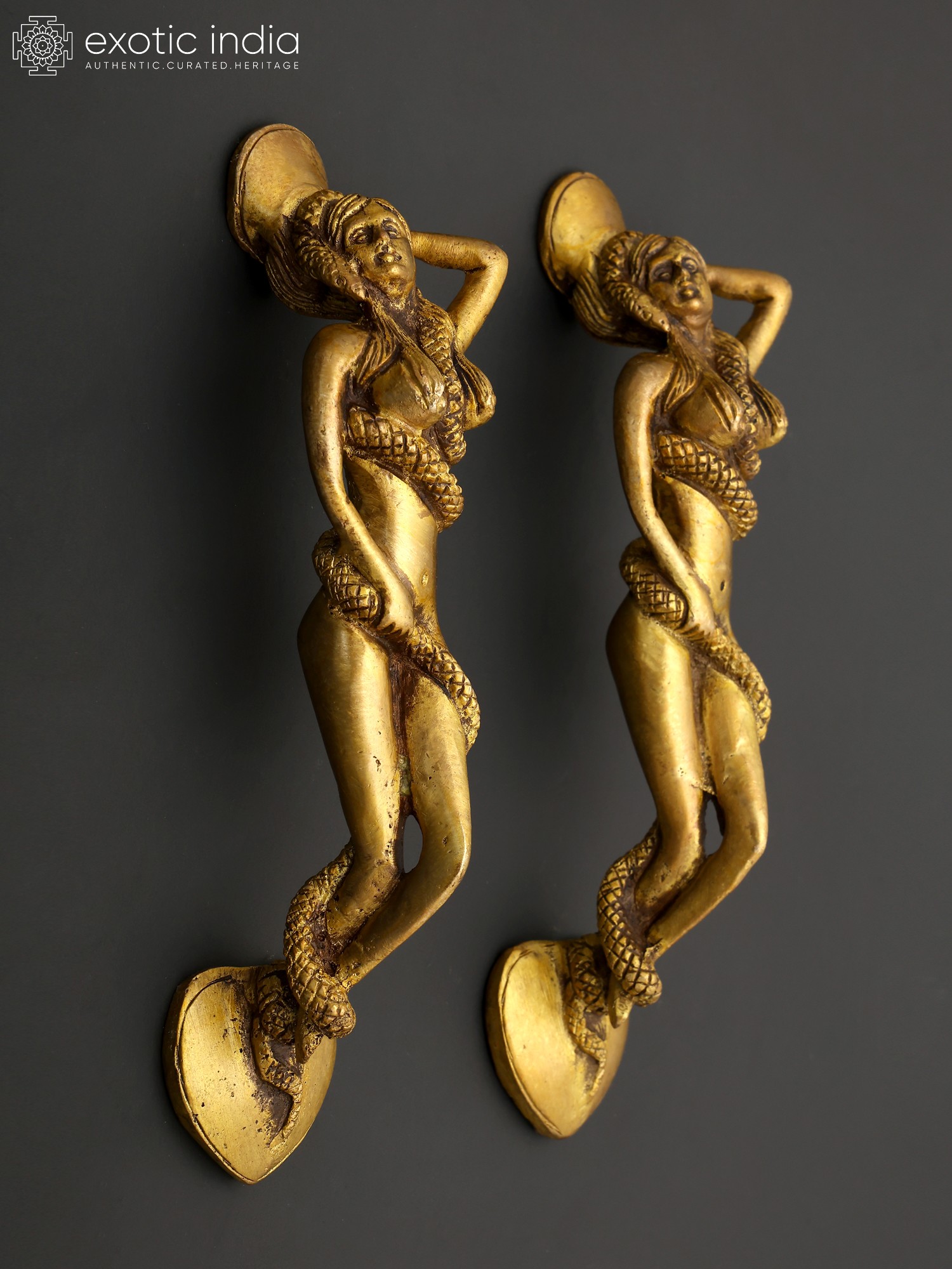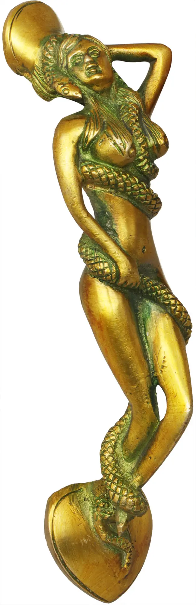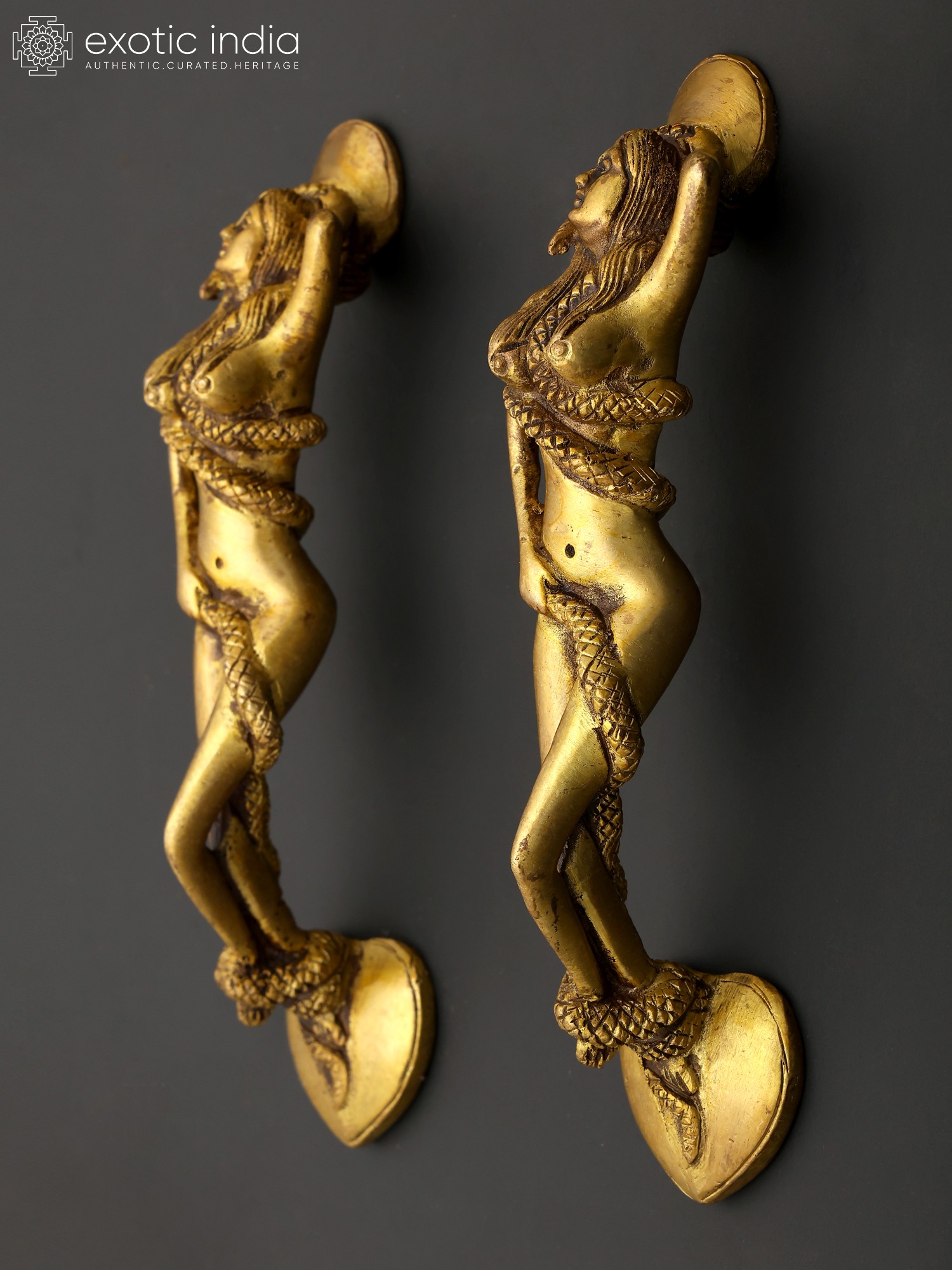 Modern in finish and antique in the ideas employed, this brass door handle is the right pick for you if you want a balance of new and old for your space. The ancient belief that young women and snakes signify fertility and abundance is used by the maker to create a sensuous image- the curvature of the woman’s body being complemented by the coils of the snake. Tasteful and artistic, these brass door handles will surely catch the eye of anyone who enters your place, earning you and their maker accolades for masterful attention to detail.