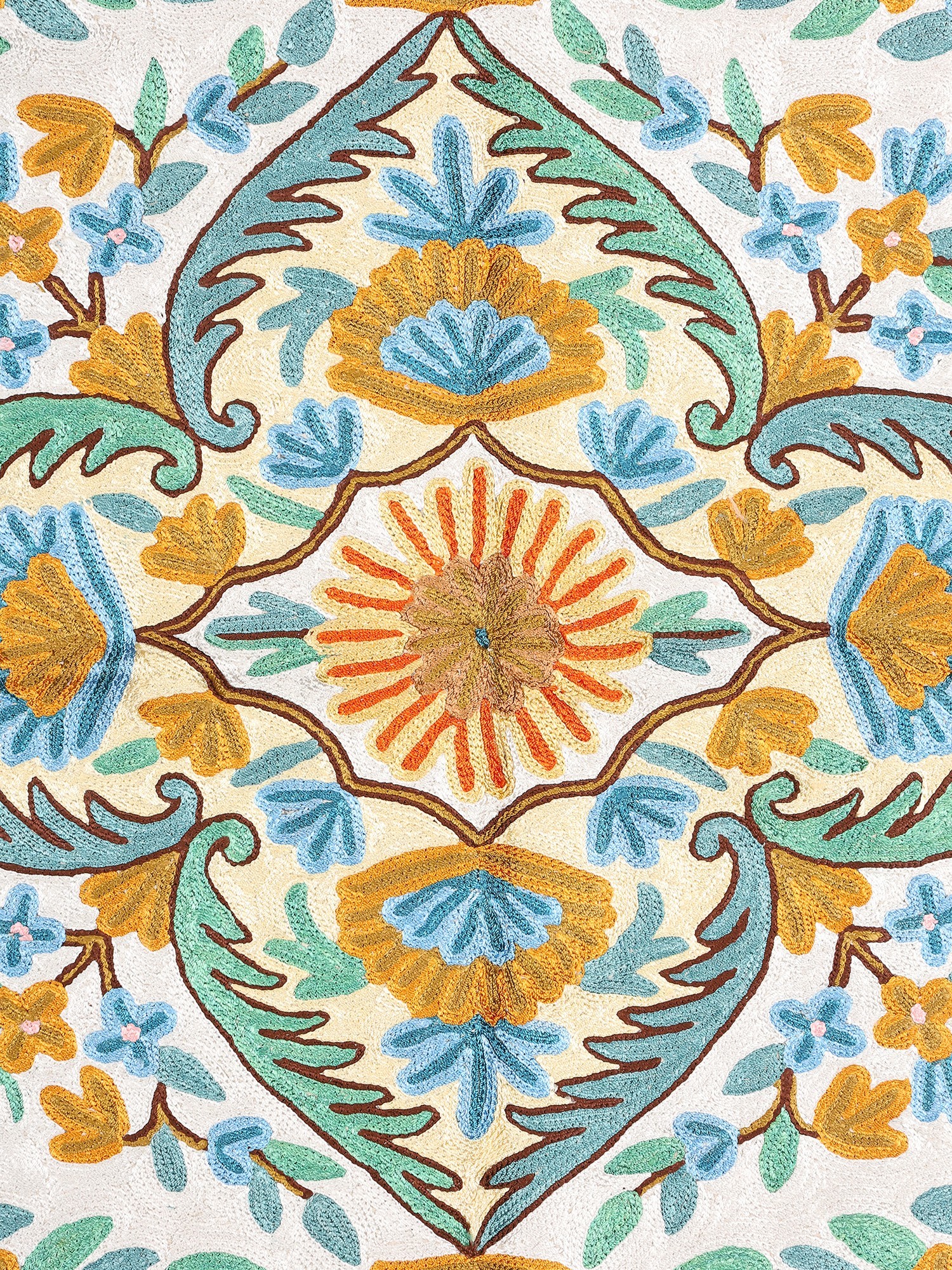 Tri-Color Floral Embroidered Wall-Hanging cum Carpet from Kashmir