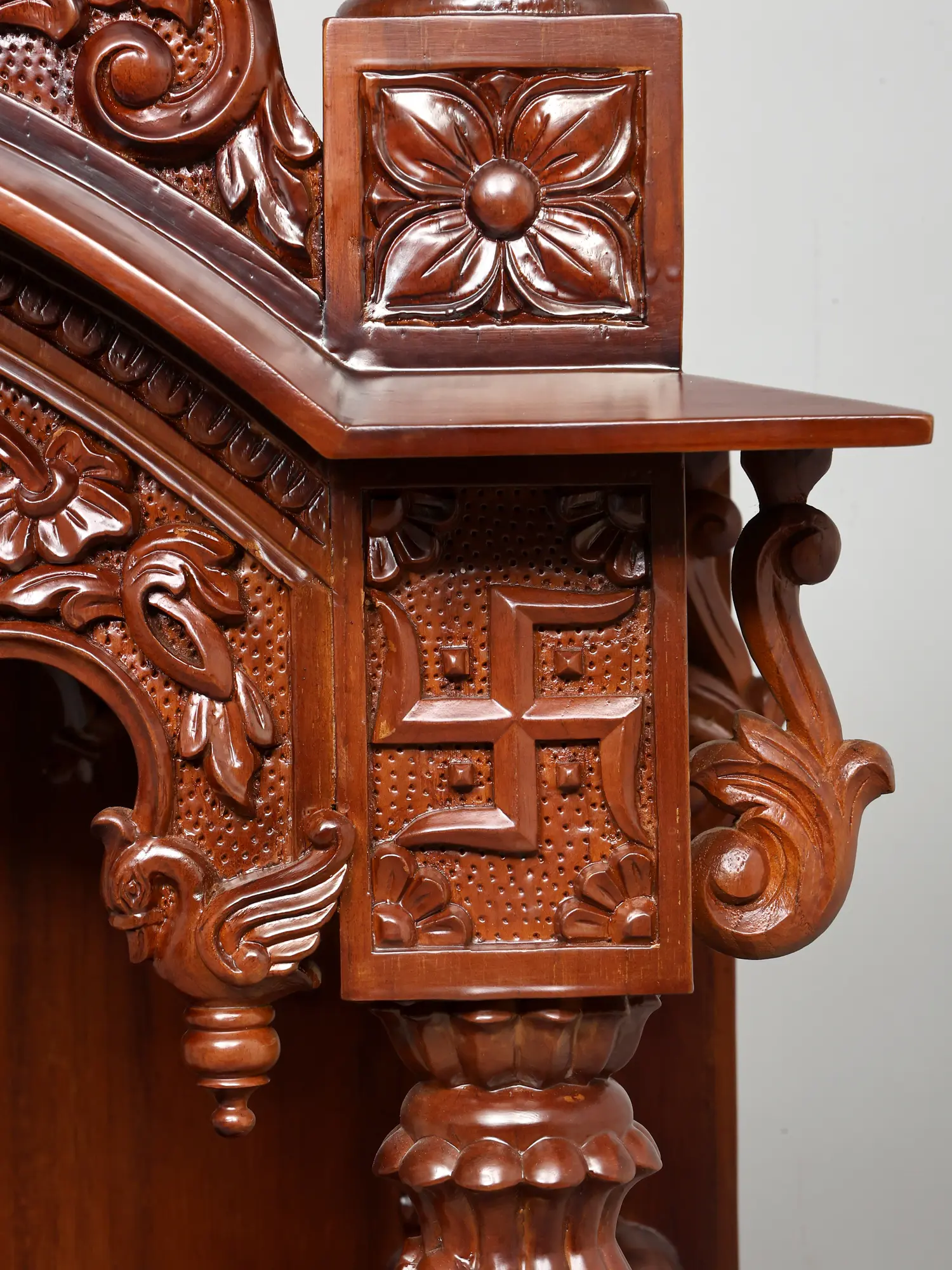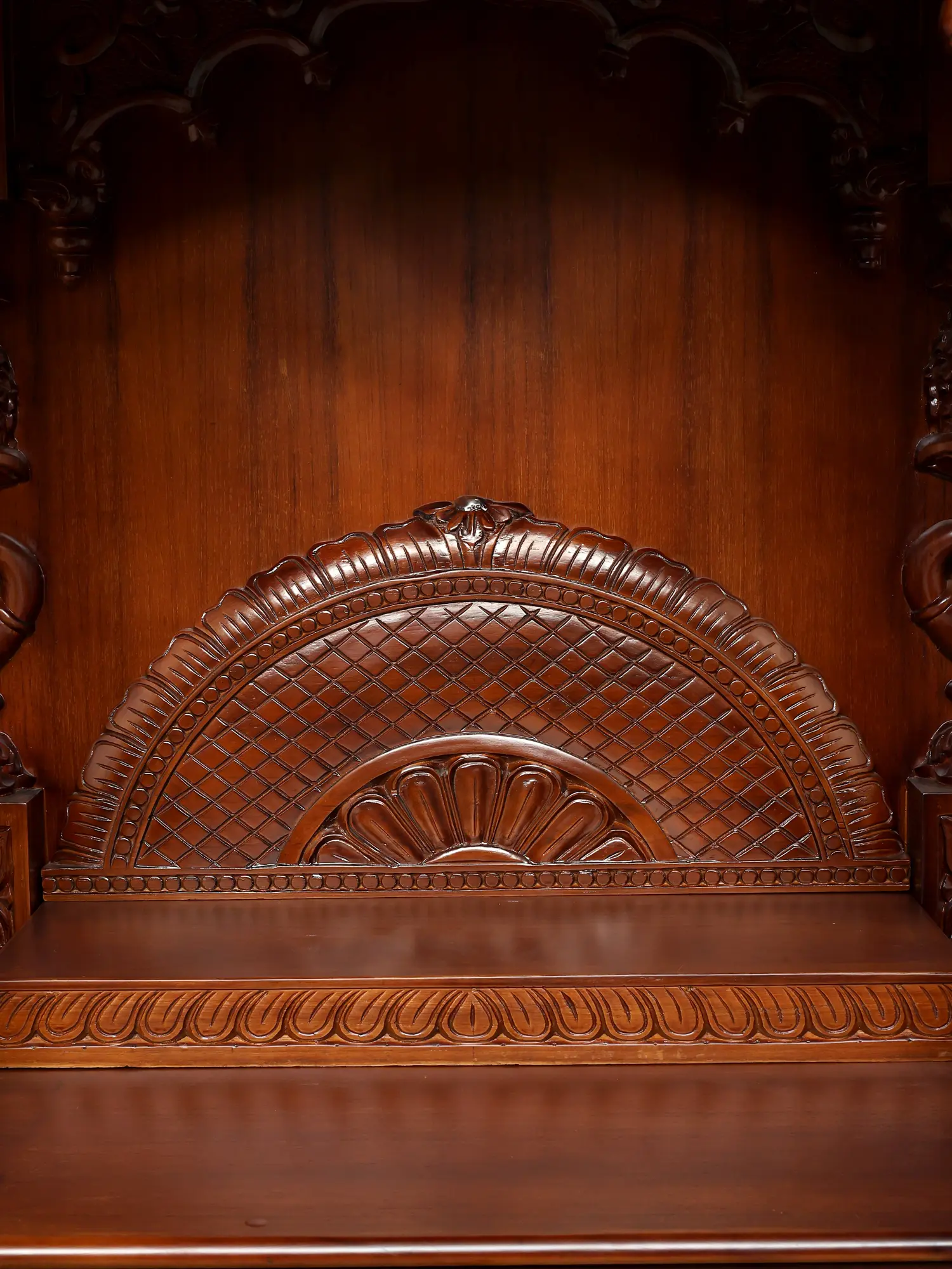 Imagine this magnificent piece gracing your living room, a dedicated prayer corner, or even a peaceful study. Its spacious interior is perfectly suited for displaying your cherished idols, while the rich wood and intricate carvings will command admiration and foster an atmosphere of tranquility. You'll find it ideal for performing daily aartis, meditations, or simply as a stunning focal point that inspires peace and reflection in your home.
