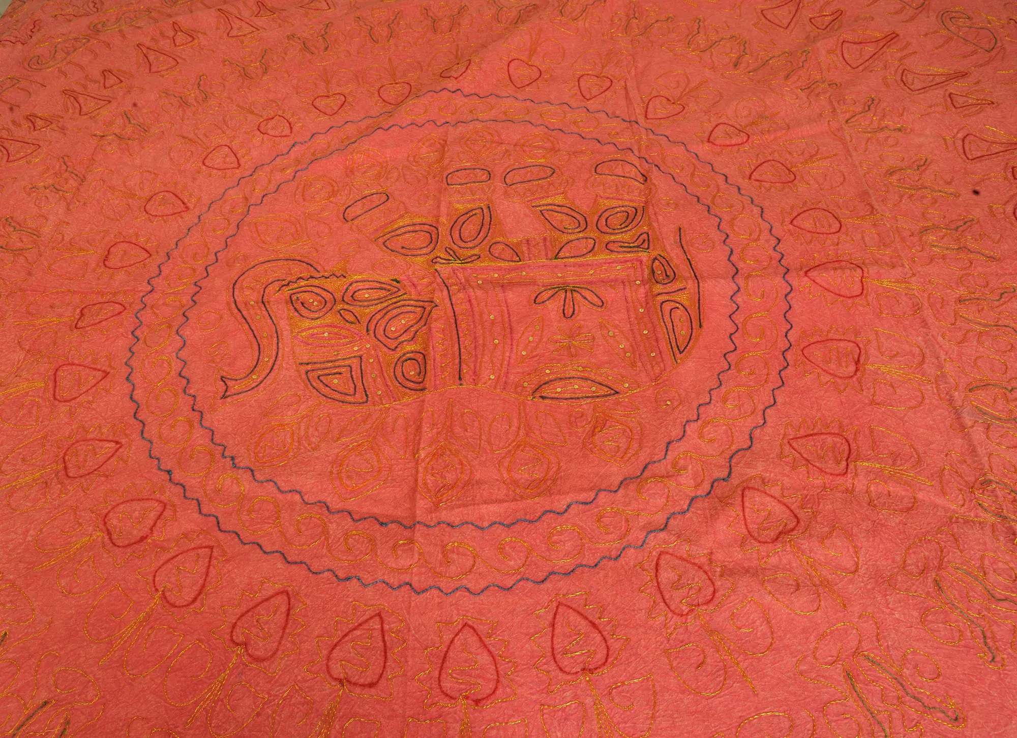Spiced-Coral Stonewashed Bedspread from Jaipur with All-Over Embroidery in Zari-Thread
