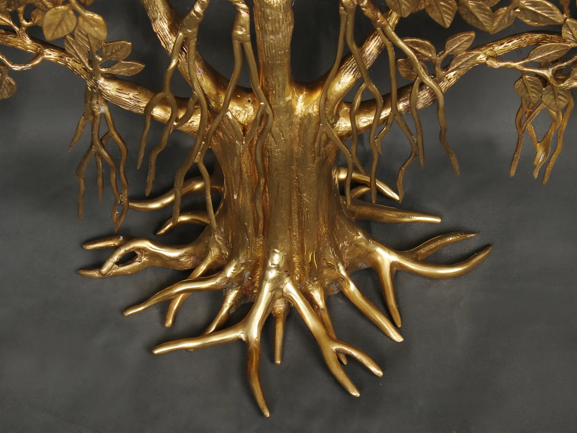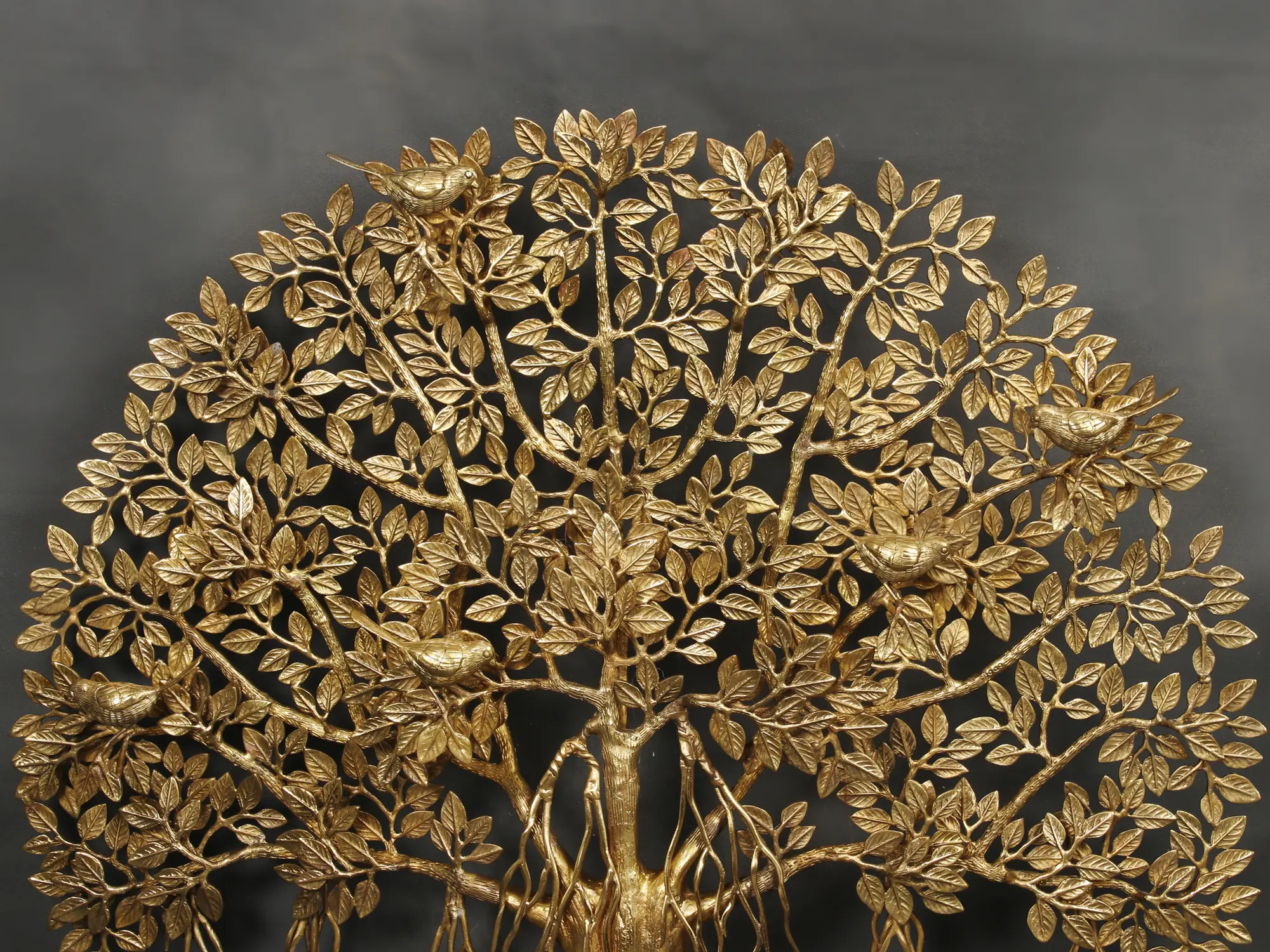 It's said that a Banyan tree is the heavenly residence of Lord Shiva and Lord Brahma. This magnific work is devoted to the majesty of the Banyan tree or the Vata Vruksha, and oozes regal nobility. The roots growing down give this tree the stability to survive thousands of years, and hence the tree symbolises eternity. This brass tree was adroitly drafted and displays a harmonious combination of brass, a long- continuing material, and natural beauty. Brass- coloured birds perch gracefully on the branches, adding to the majesty of the scene. The massive roots of the tree reach down to link with the blessed earth bear validation to the fabulous description. A glowing display of beauty is handed by a spectacular array of painstakingly designed brass leaves that expands outwards. This work of art is a must- have for everyone who appreciates incorporating tradition into their home decor.