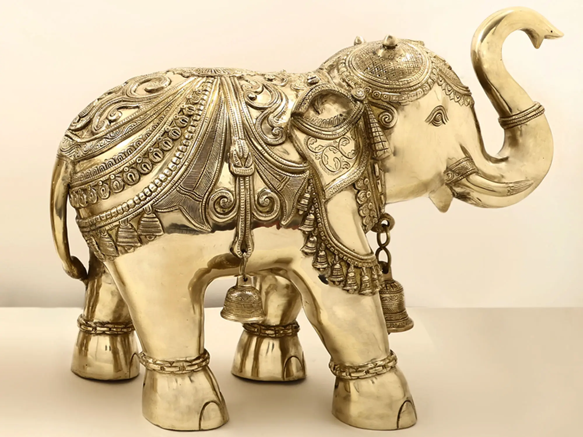 In the wisdom of their eyes, two majestic souls meet, carrying the legacy of strength and loyalty." This exquisite pair of brass elephants embodies a profound bond that transcends time. Handcrafted with intricate engravings, they stand as a testament to the artistry of skilled artisans. As the saying goes, elephants never forget; these gentle giants symbolize enduring memories and steadfast companionship. Their presence in your space reminds you to cherish the connections that enrich your life. Like the elephants' unwavering commitment, may you nurture and protect the bonds that define your journey.