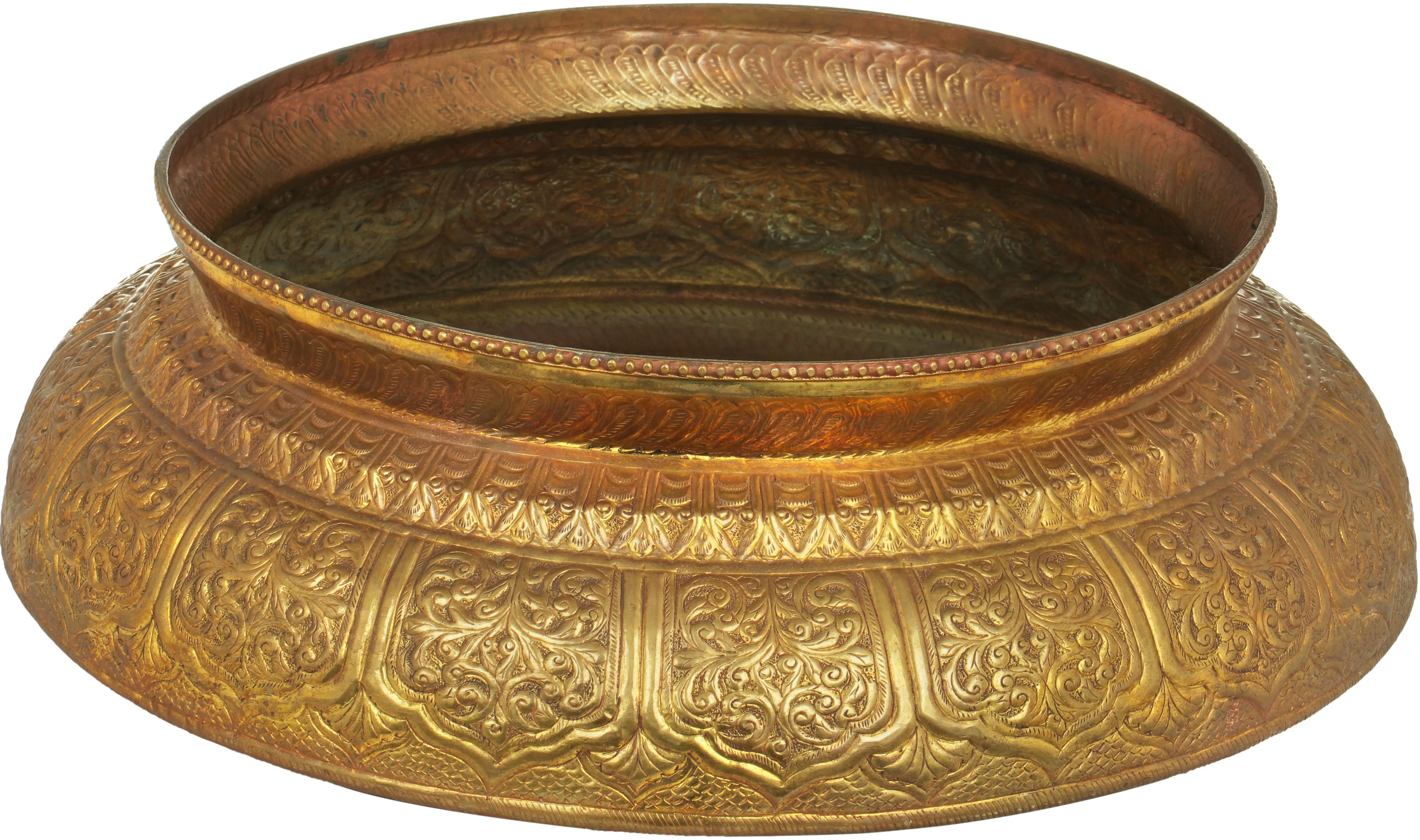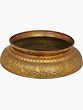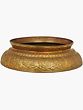 The defining feature of this magnificent urli is its intricate repousse work. This ancient metalworking technique involves hammering the brass from the reverse side to create raised, three-dimensional designs. The surface is alive with swirling floral motifs and detailed patterns, each meticulously rendered to capture the light and create a mesmerizing play of shadows. The repousse work not only enhances the visual appeal of the urli but also reflects the skilled craftsmanship of the artisans who poured their heart and soul into its creation. The raised designs catch the eye, adding a layer of depth and texture that elevates this urli to a work of art.