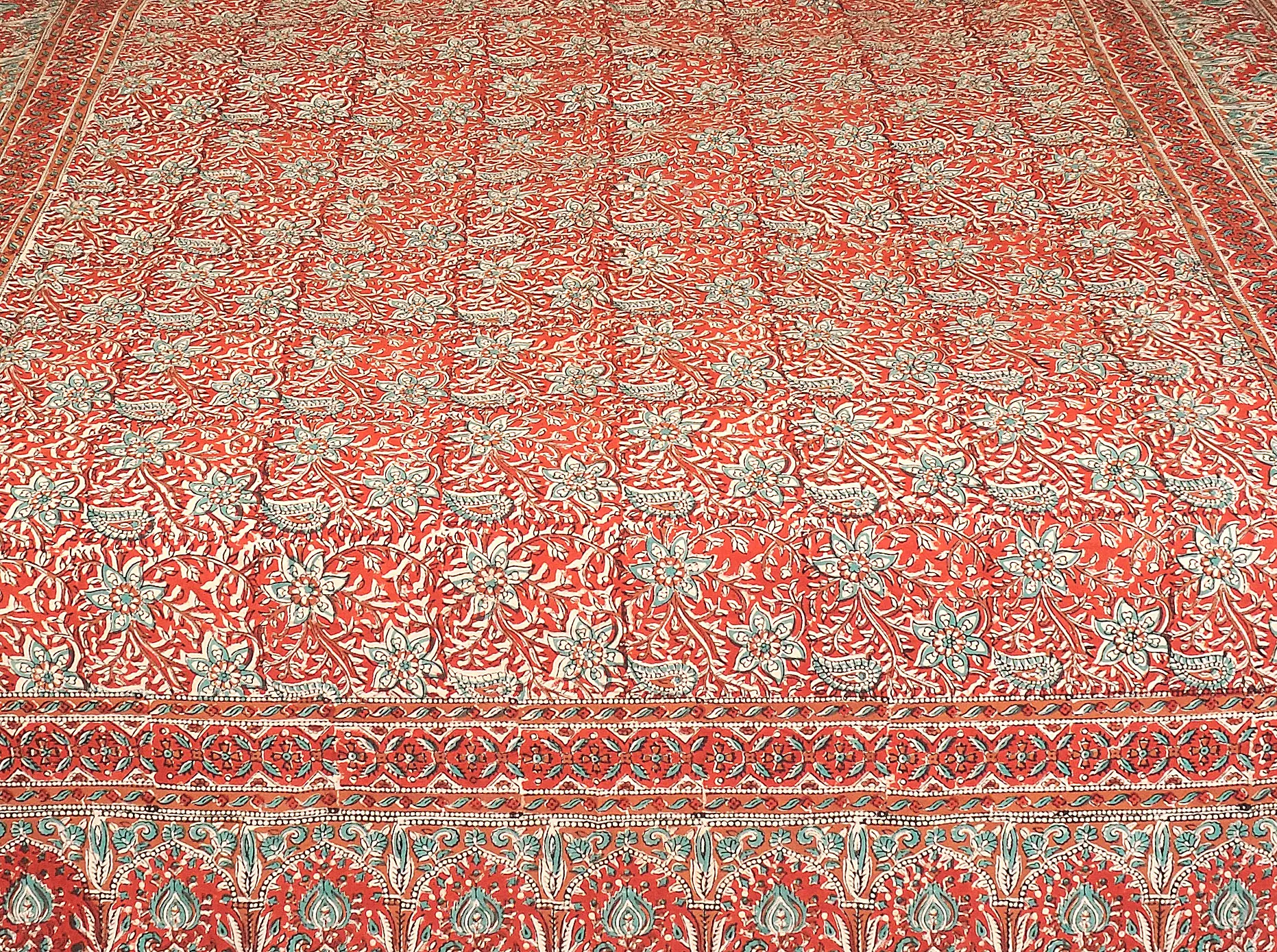 Bedspread from Sanganer with Printed Flowers and Leaves