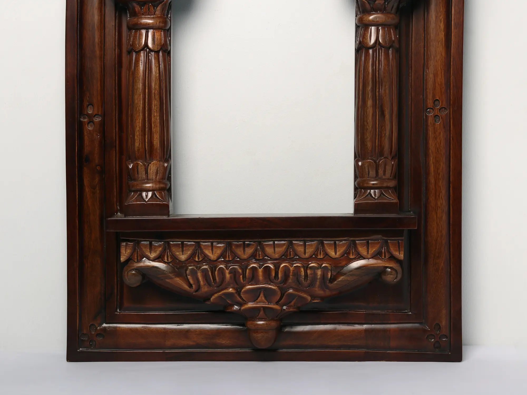 Beyond its decorative prowess, the Teakwood Designer Jharokha serves as a cultural statement, reflecting the grandeur of Rajasthan's architectural heritage. The intricate detailing, carved from teakwood, not only adds visual appeal but also signifies the durability and timelessness of the piece. Placing this Jharokha in a prominent position allows for a captivating interplay of light and shadow, enhancing its beauty. This teakwood masterpiece stands as a testament to the enduring allure of traditional design, bringing a touch of Rajasthan's majestic elegance to contemporary spaces.