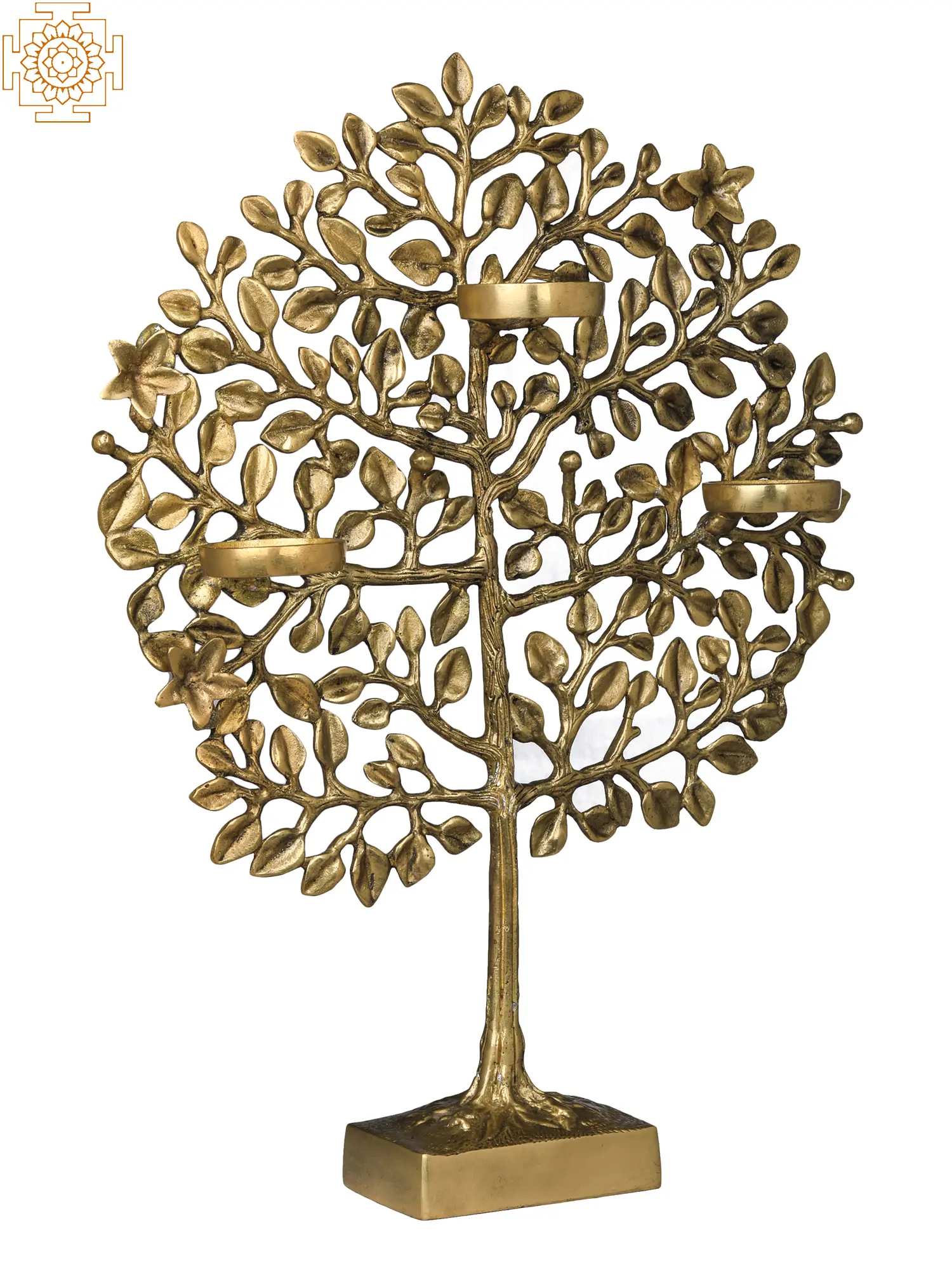This creative metal Diya holder has been meticulously designed to ooze elegance and aesthetic sophistication. It has the form of a Plumeria tree with leafy branches and some flowers here and there, emphasising grace and upward growth. The sculpture includes three candle holders that provide warm, calming illumination. When we light the candles, we carefully arrange them on the tree to maximise light reflection, and enhance the beauty of the golden sheen of the leaves. This one-of-a-kind sculpture combines natural form with functional beauty, making it an eye-catching centre piece or decorative addition to any room. The candle holder's tree-like design encourages introspection while also recognising the underlying beauty of simplicity and organic designs.