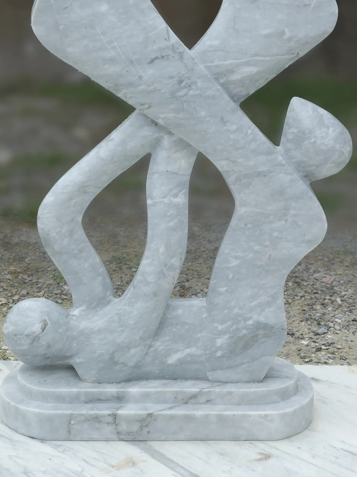 Through the hardness of marble, the artist carves the gentlest of truths: that togetherness is not weight but grace, a rhythm of hearts leaning, lifting, and belonging. “Tied by Love” stands as a reminder that even in stillness, love has its own quiet motion.