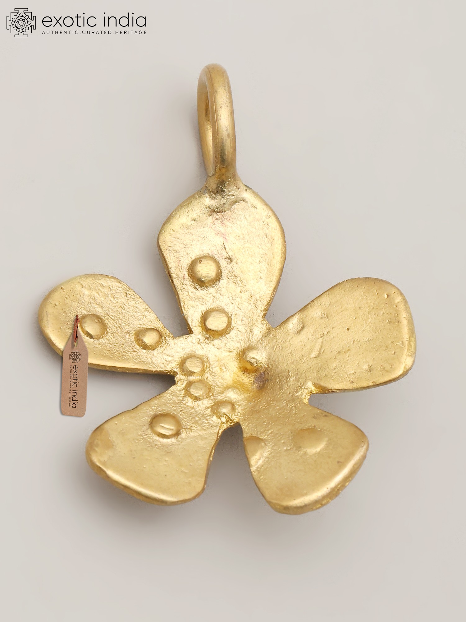 The subtle raised dots adorning each petal create a captivating play of light and shadow, mimicking the delicate texture of nature. Its compact 1.5-inch stature makes it remarkably versatile, while the integrated loop ensures effortless attachment to your favorite chain, bracelet, or decorative element. The polished brass surface glows with a warm, inviting radiance, adding a touch of understated luxury.