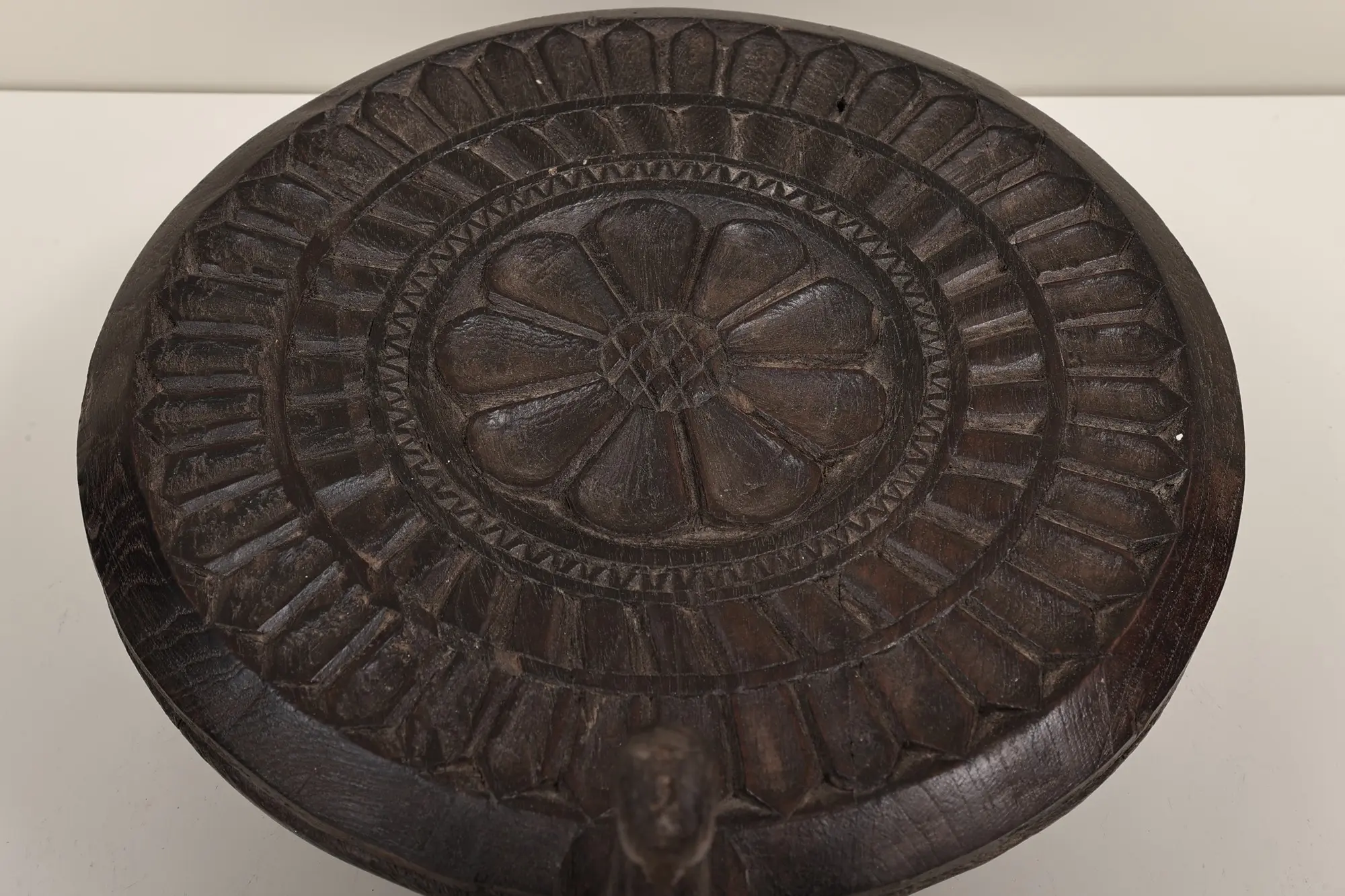 Carved Wooden Storage Bowls with Ornate Brass Detailing