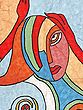 Rainbow Wall-Hanging cum Carpet with Aari Embroidered Picasso Inspired Female Portrait from Kashmir